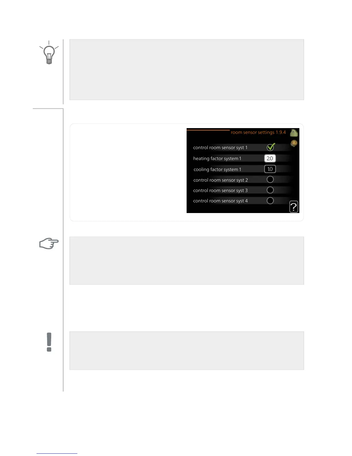 Room sensors to control the room temperature can be activated here.