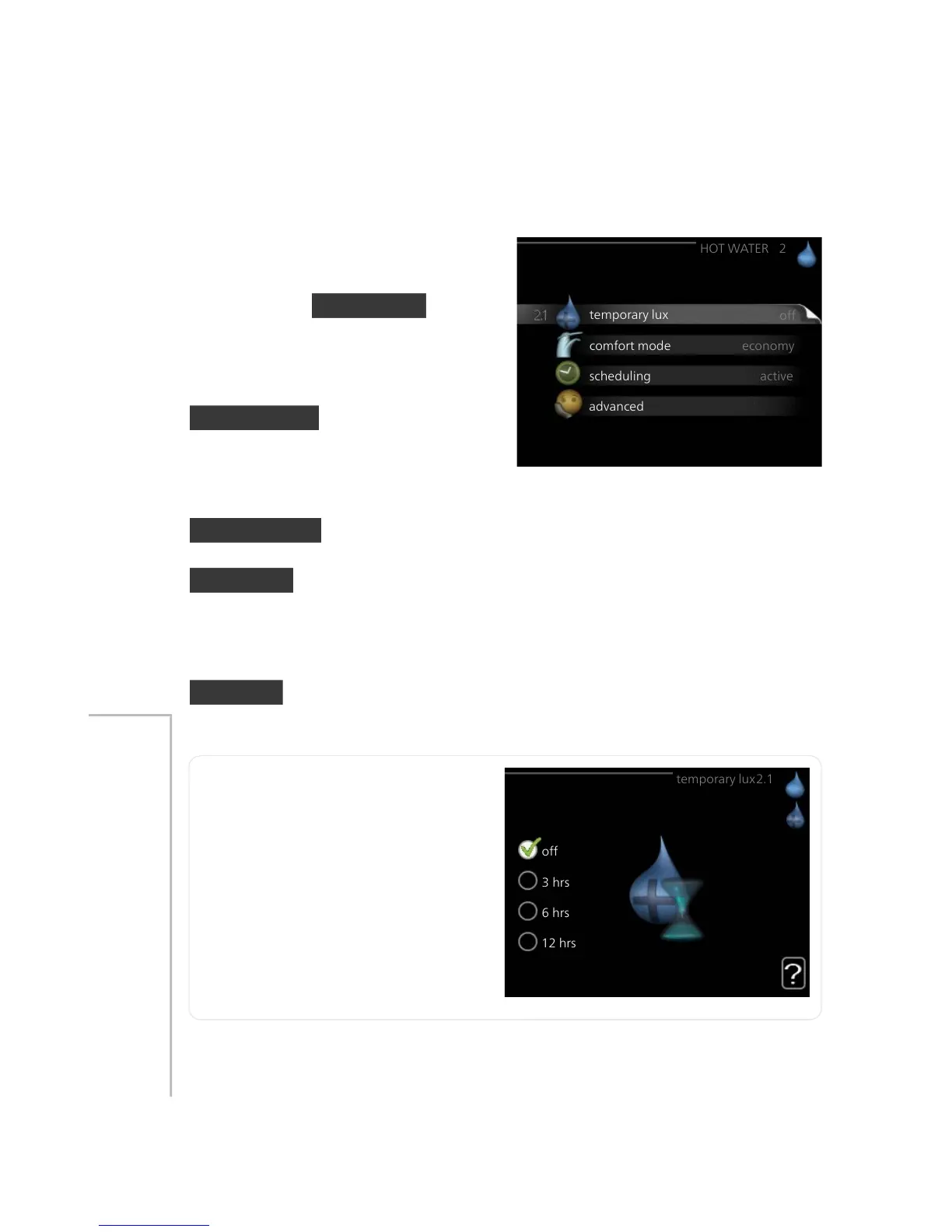 used to select an increase in the hot water temperature to lux mode for