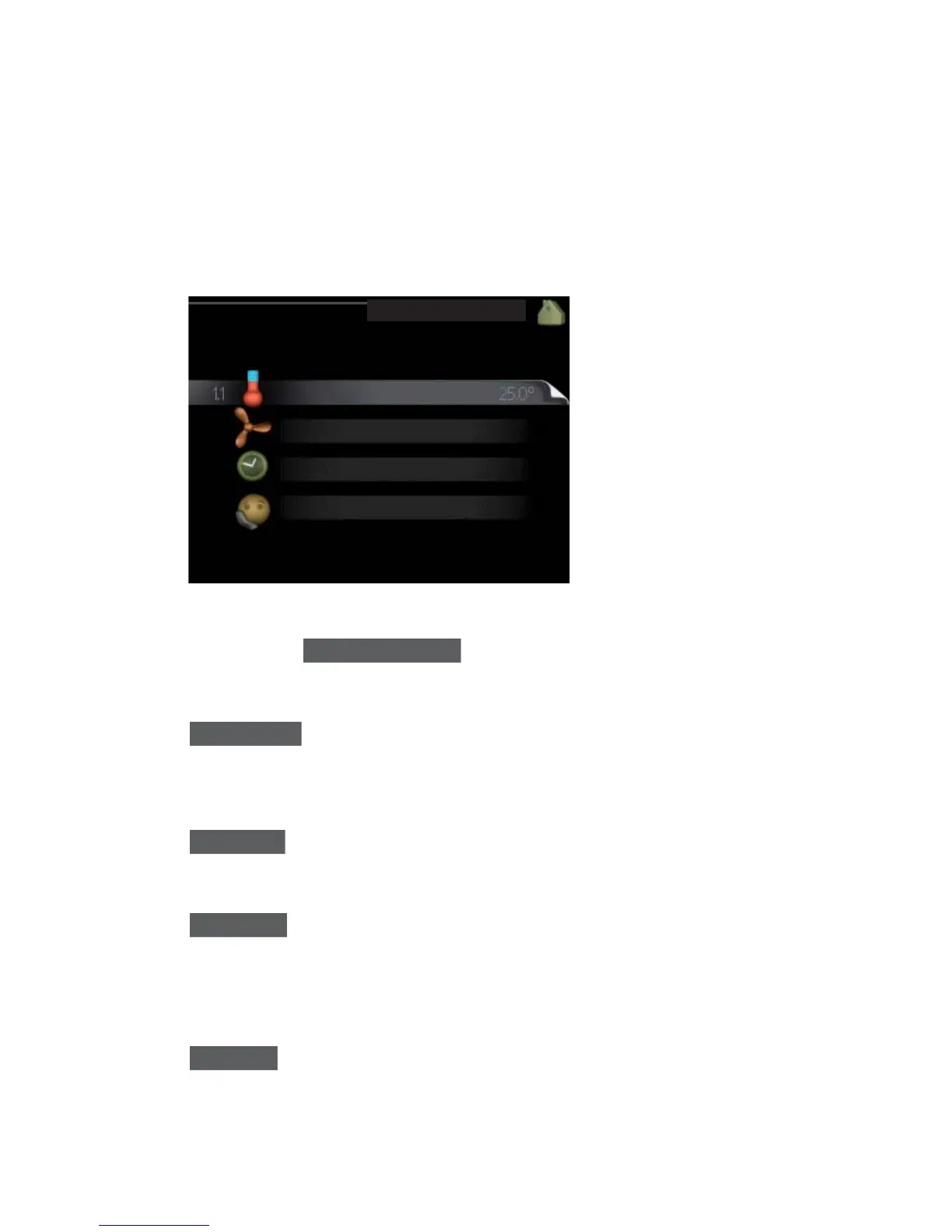 For the menu INDOOR CLIMATE there are several sub-menus. Status inform-