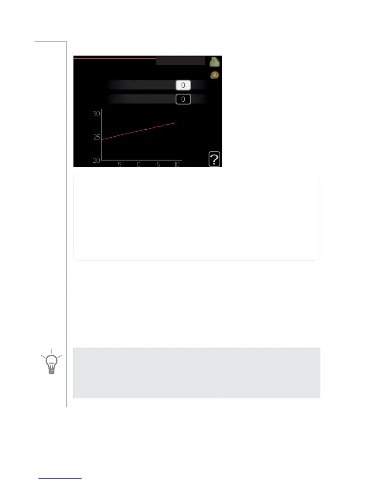 The heat curve is affected at ± 5 °C from set outdoor temp. point.