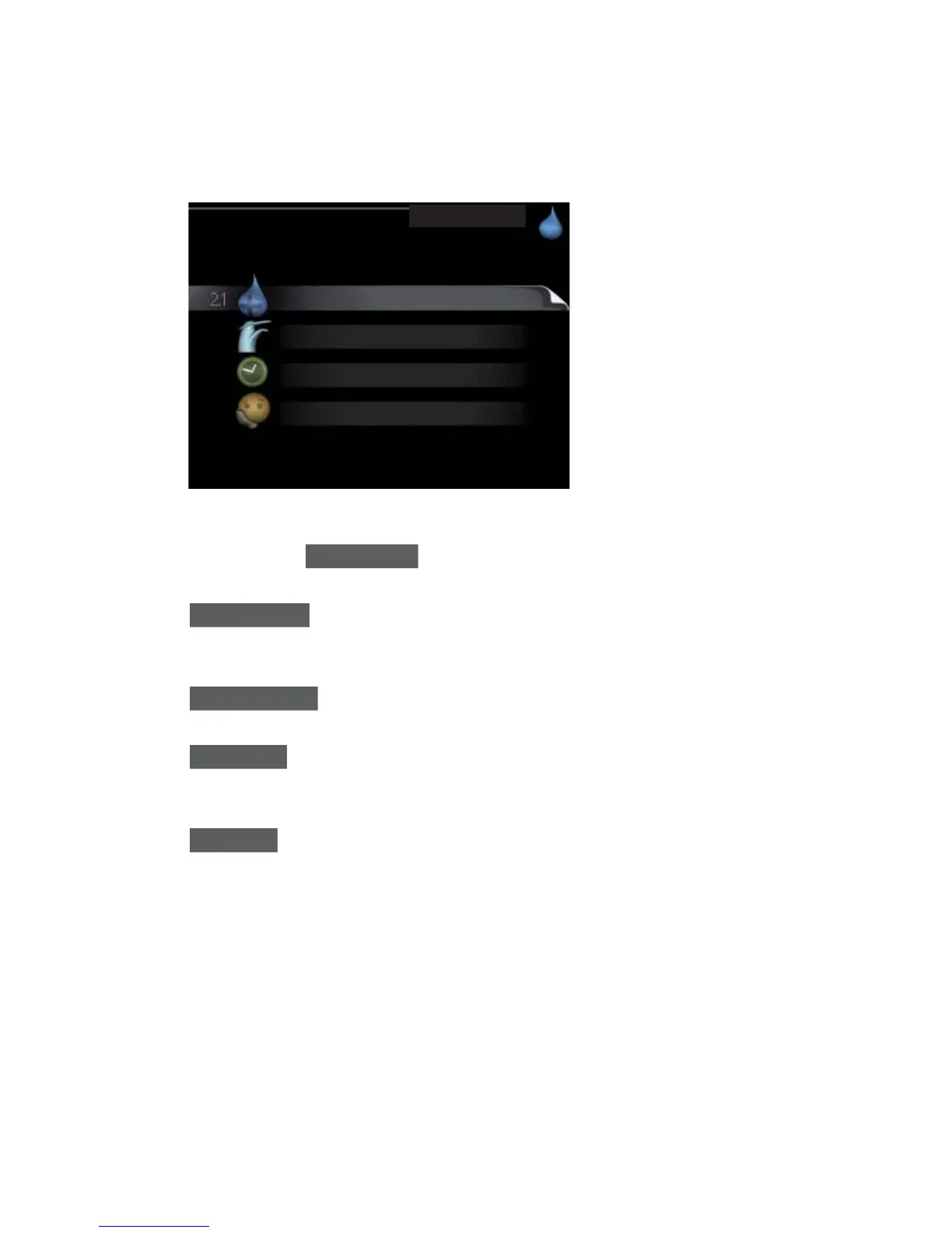 comfort mode Setting hot water comfort. The status information displays