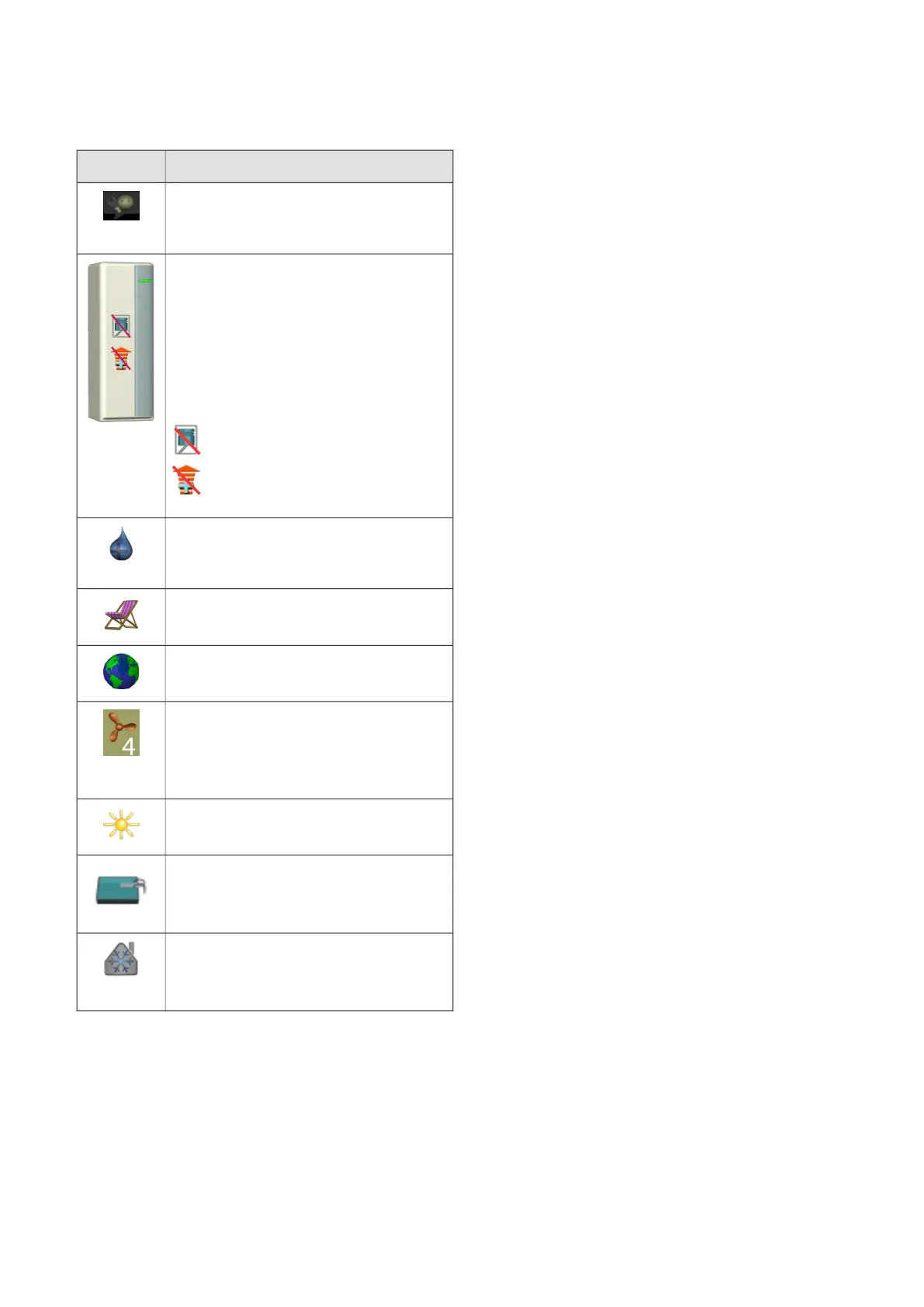 This symbol indicates whether cooling is