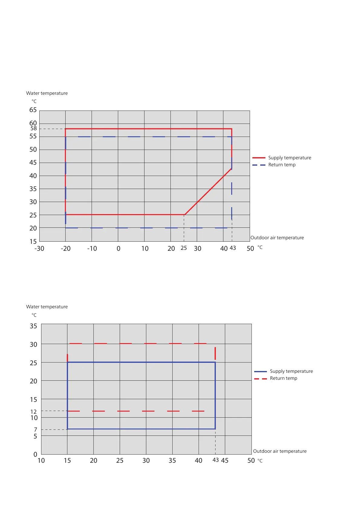 During shorter time it is allowed to have lower working temperatures on the water side, e.g. during start up.