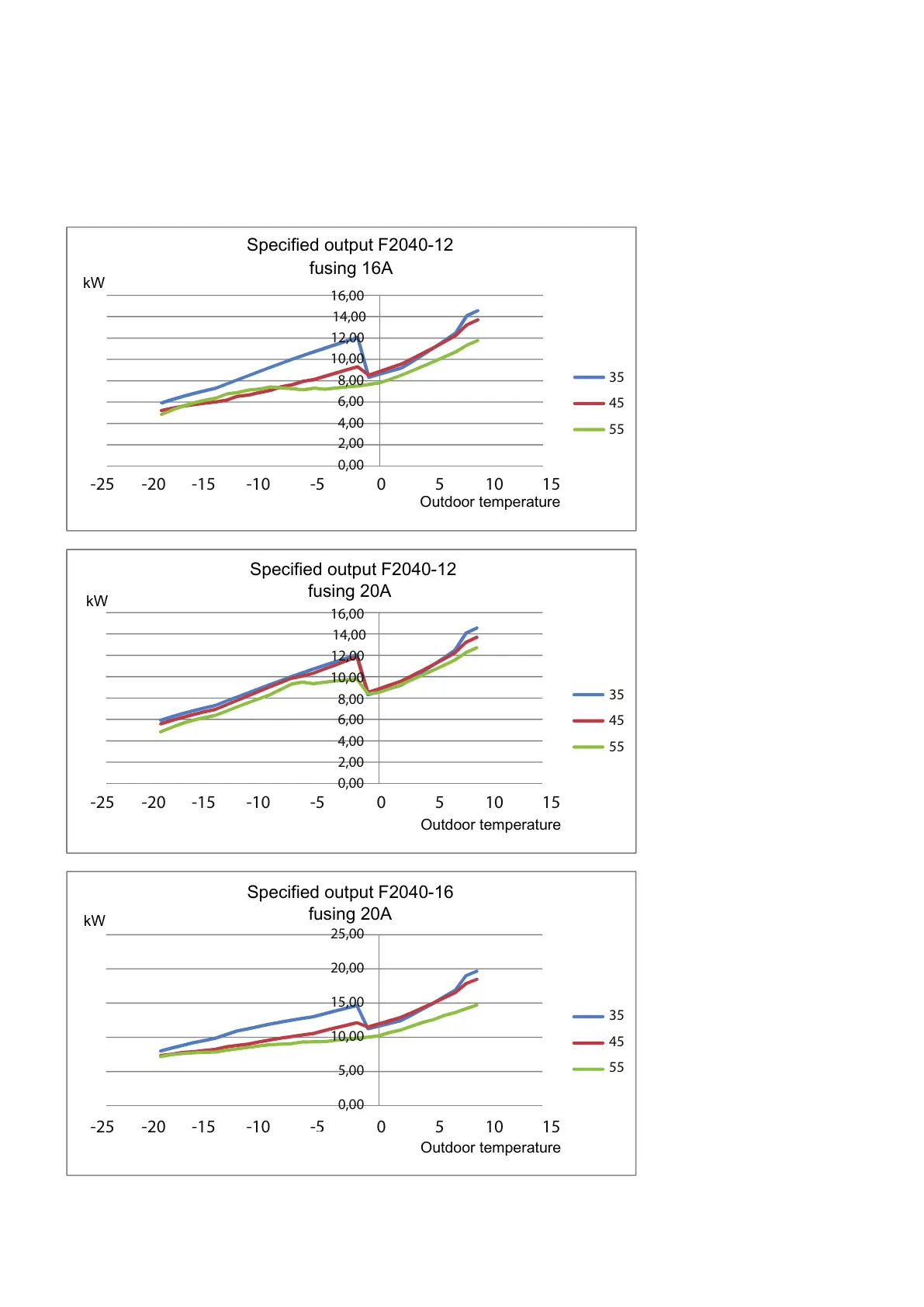 Avgiven eekt F2040-16 vid avsäkring 20A