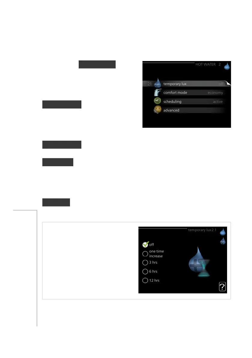 to select an increase in the hot water temperature to lux mode for a selectable