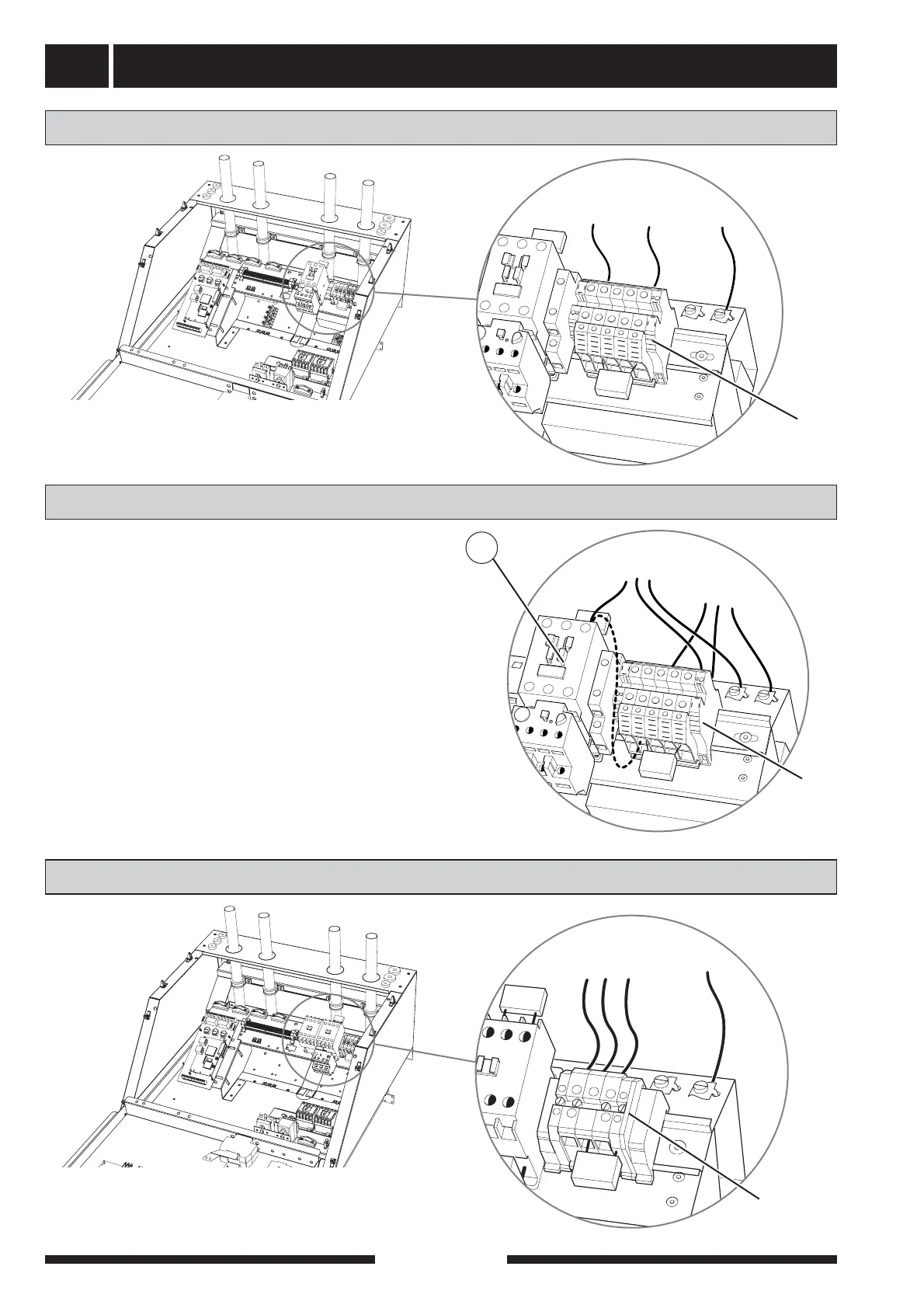 block -X9 to 3 x 230 V + PE via the junction box with