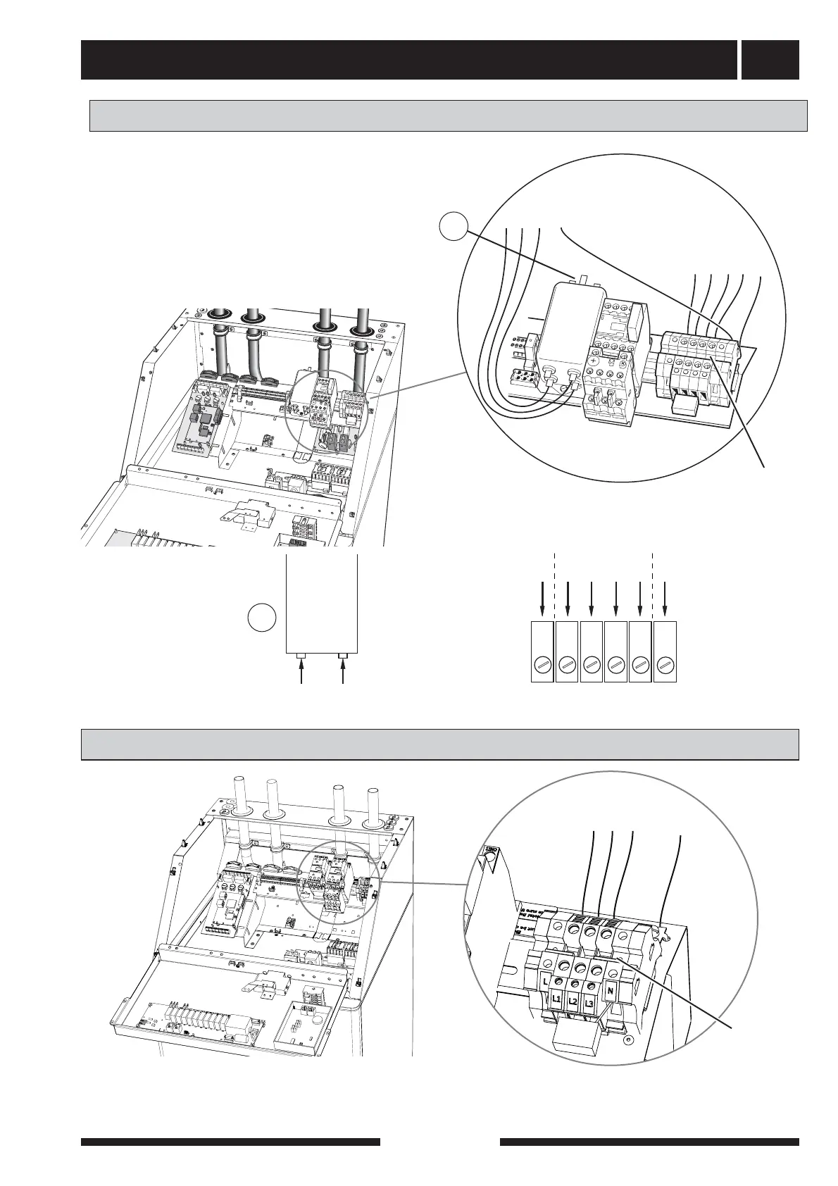 block -X9 to 3 x 230 V + PE via the junction box with