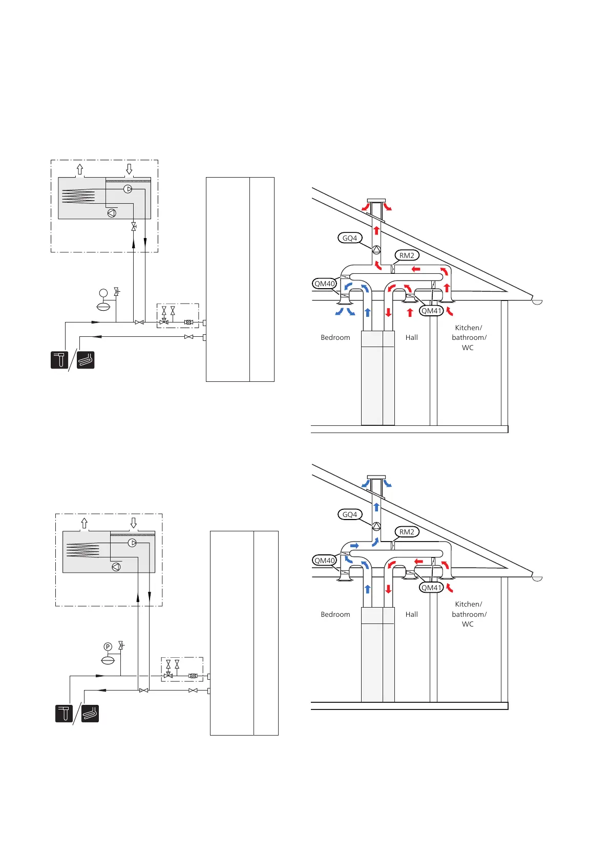 (QM41) and a non-return damper (RM2). A room sensor