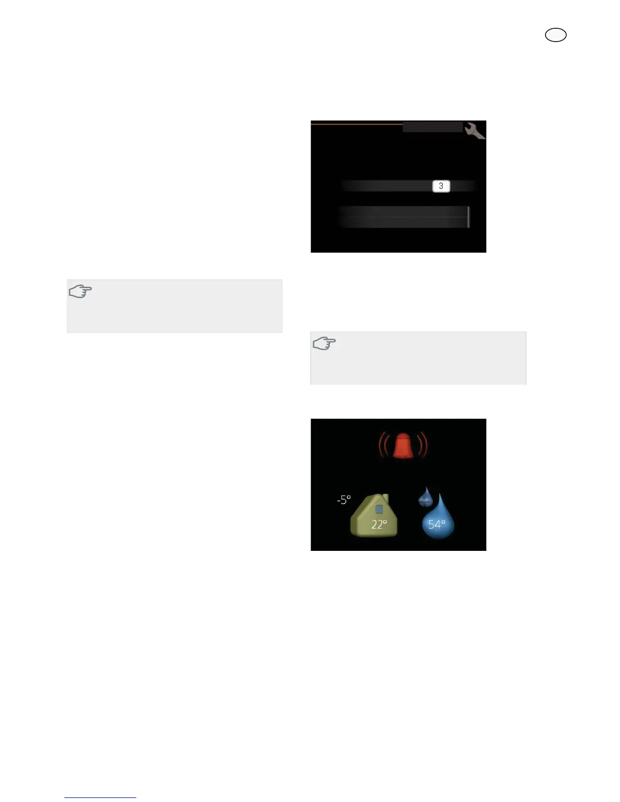 In the event of an alarm a symbol is shown at the top