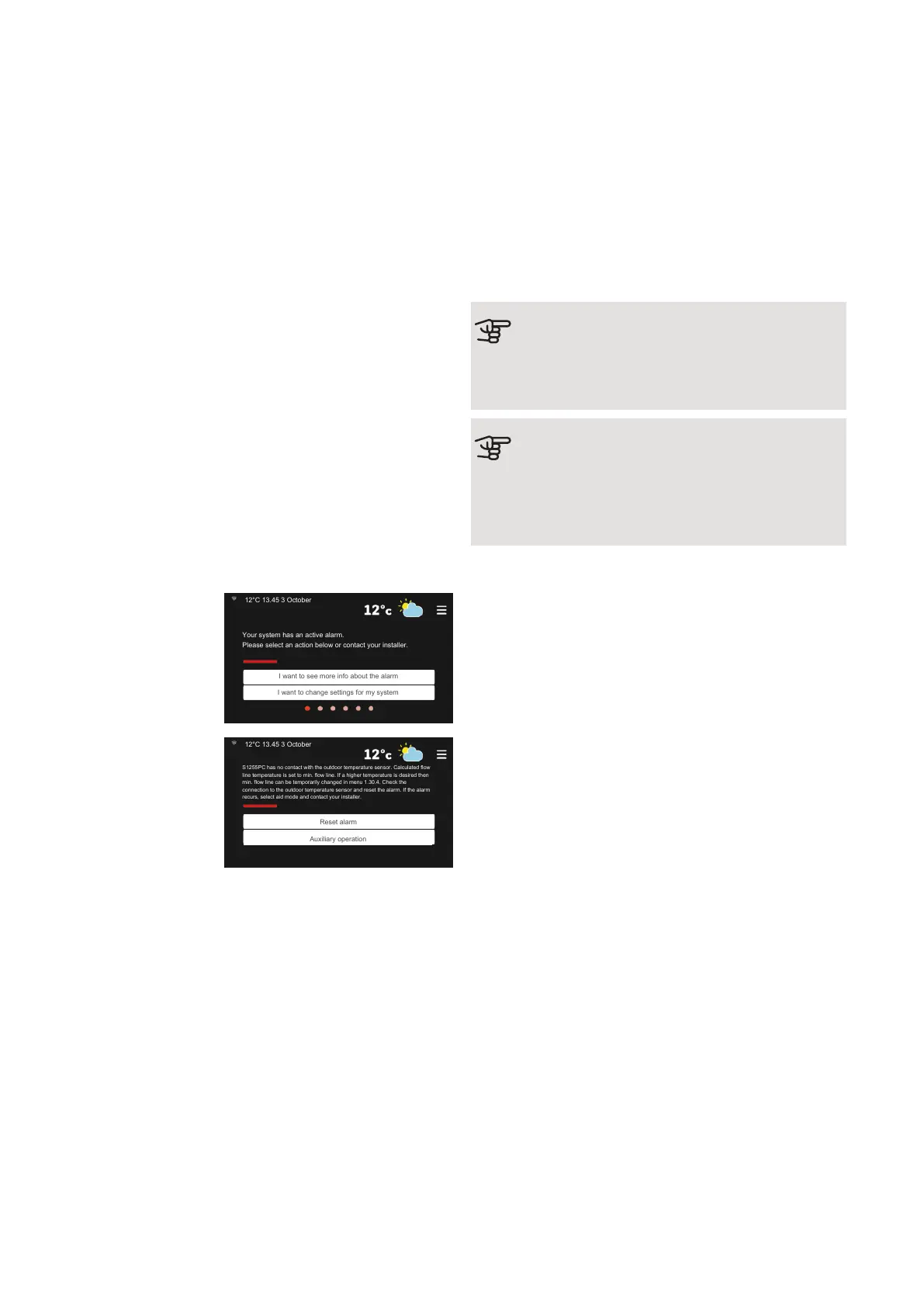 connection to the outdoor temperature sensor and reset the alarm. If the alarm