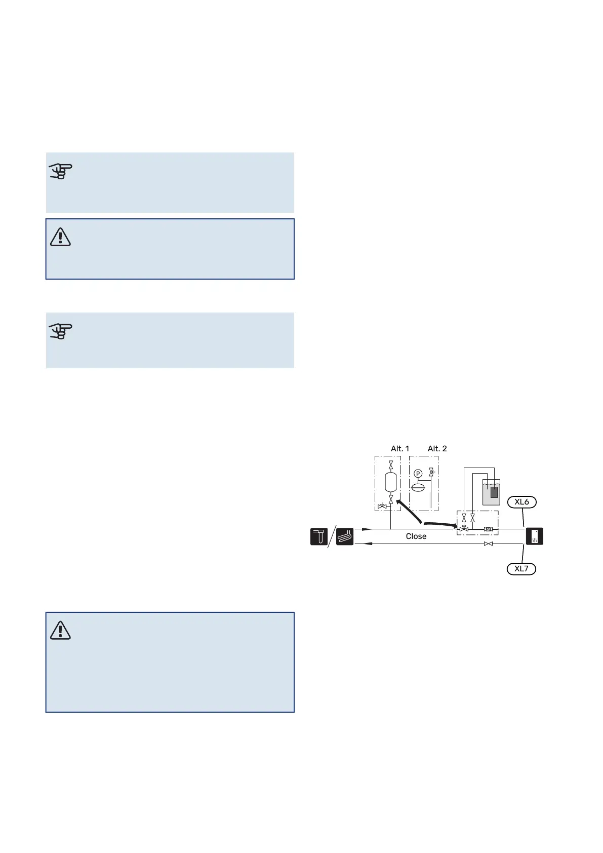 1. Open the externally mounted filling valve. Fill the coil in