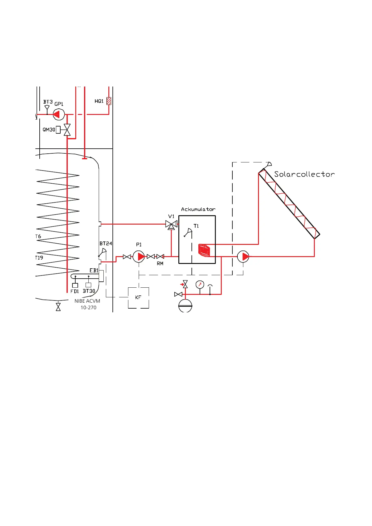 By connecting a solar heat collector via intermediate heat exchanger to NIBE SPLIT ACVM270, the solar heat can
