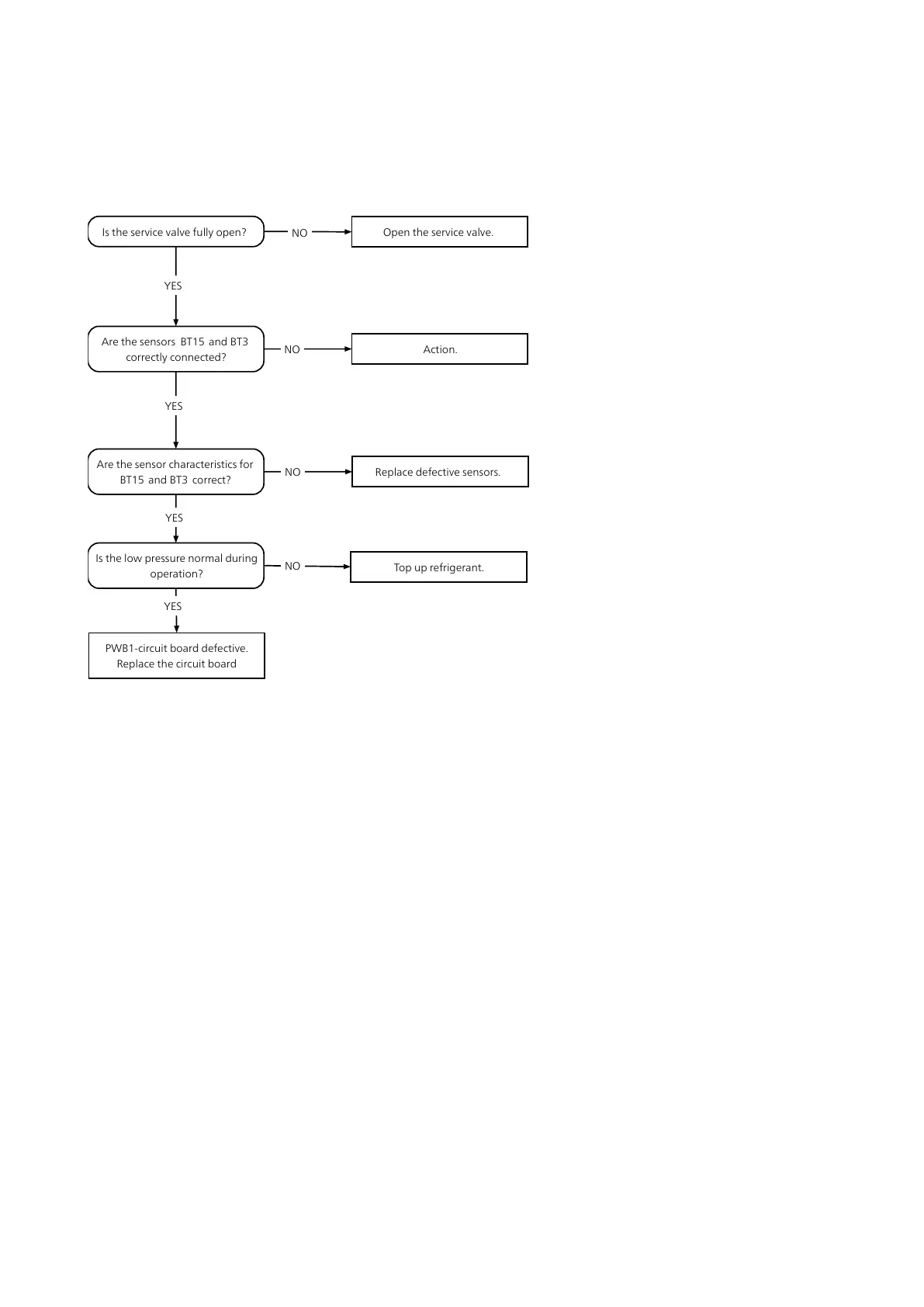 PWB1-circuit board defective.