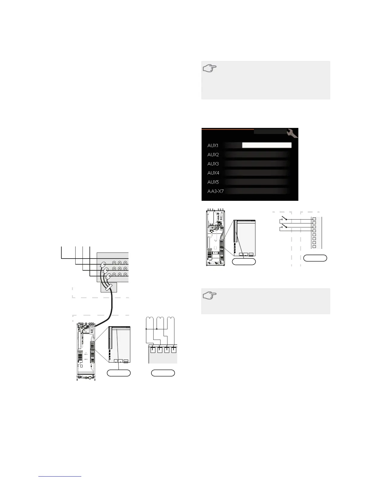 The example above uses the inputs AUX1 (X6:9-10) andAUX2