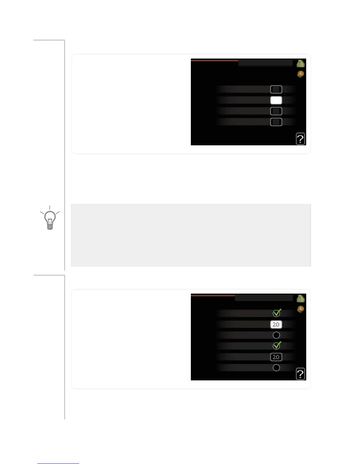 Room sensors to control the room temperature can be activated here.