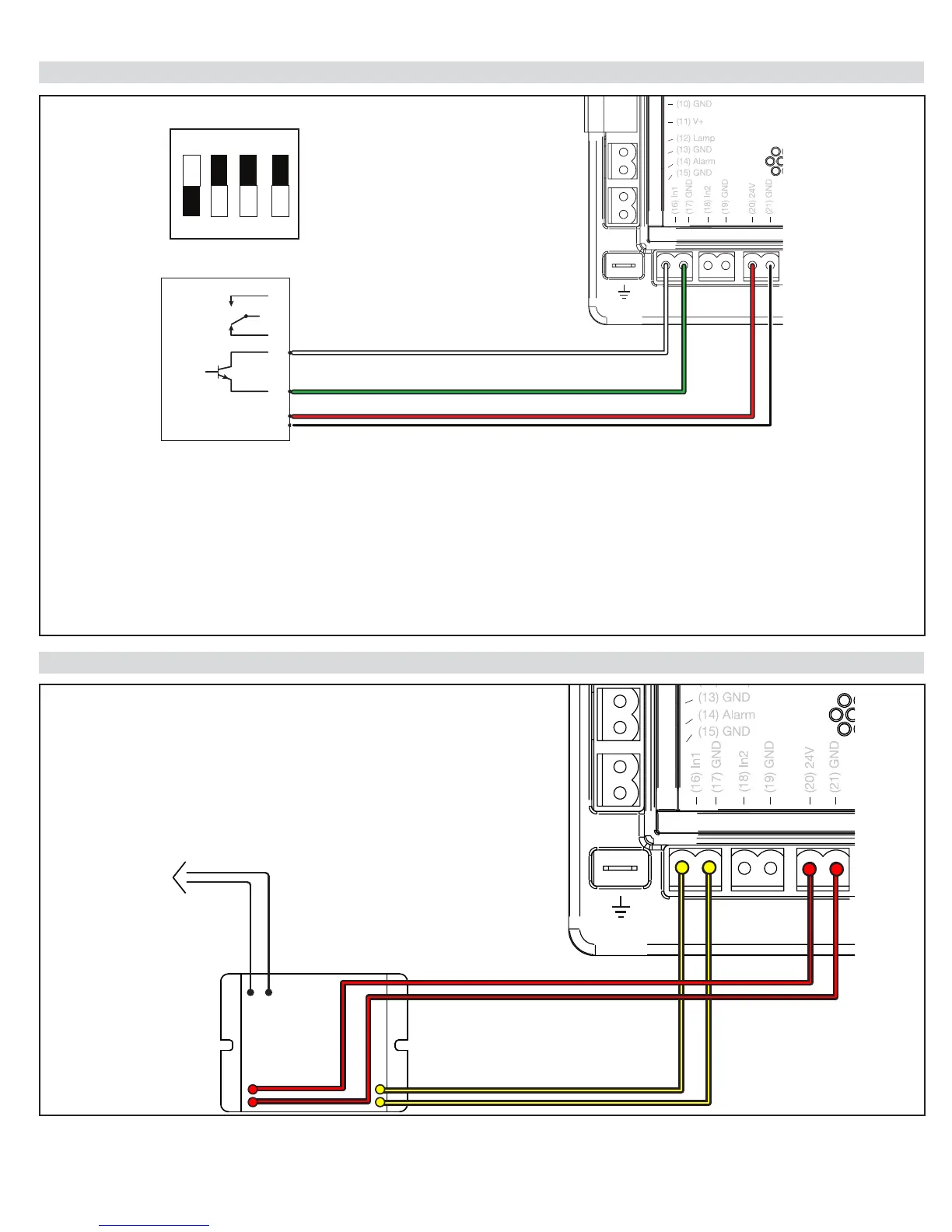 5. Connect 300Hz Monitored Safety Device to In1 (16) or In2 (18) accordingly.