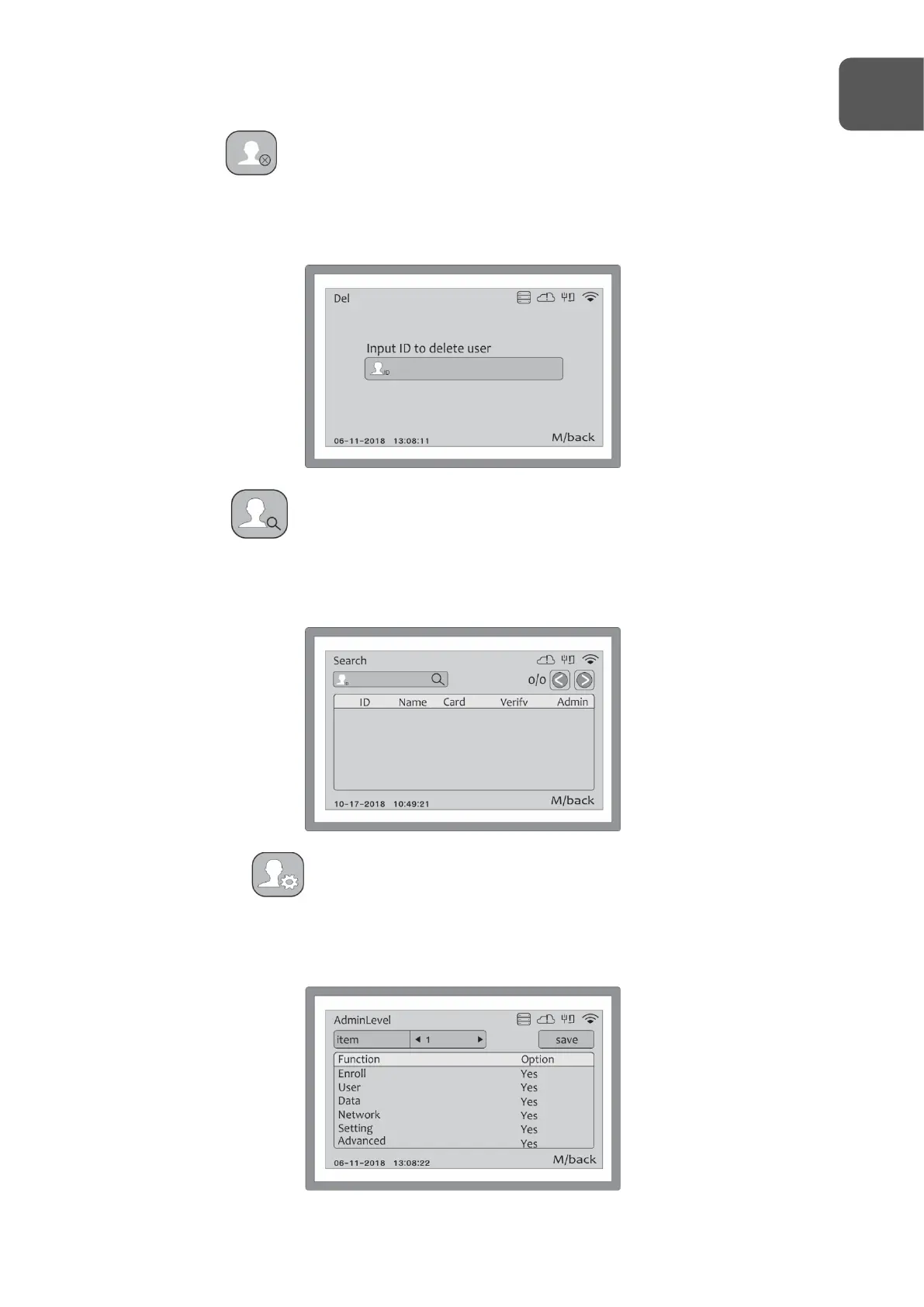 In this option, you can delete only one user. To erase all of users, do the factory reset