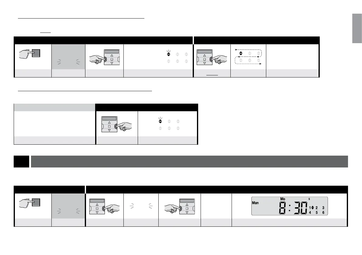 (1) - La page-écran affiche : le message «Man» allumé en permanence, l’heure actuelle, le jour effectif de la semaine, l’heure d’hiver (ou d’été), le groupe 1 accompa-