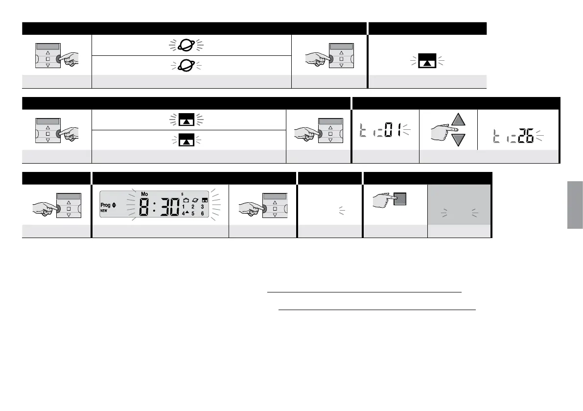 (7) - Ustawić (żądany) czas, który musi upłynąć od momentu rozpoczęcia ruchu do chwili gdy urządzenie sterujące automatyką zablokuje przesuw rolety lub żaluzji w celu