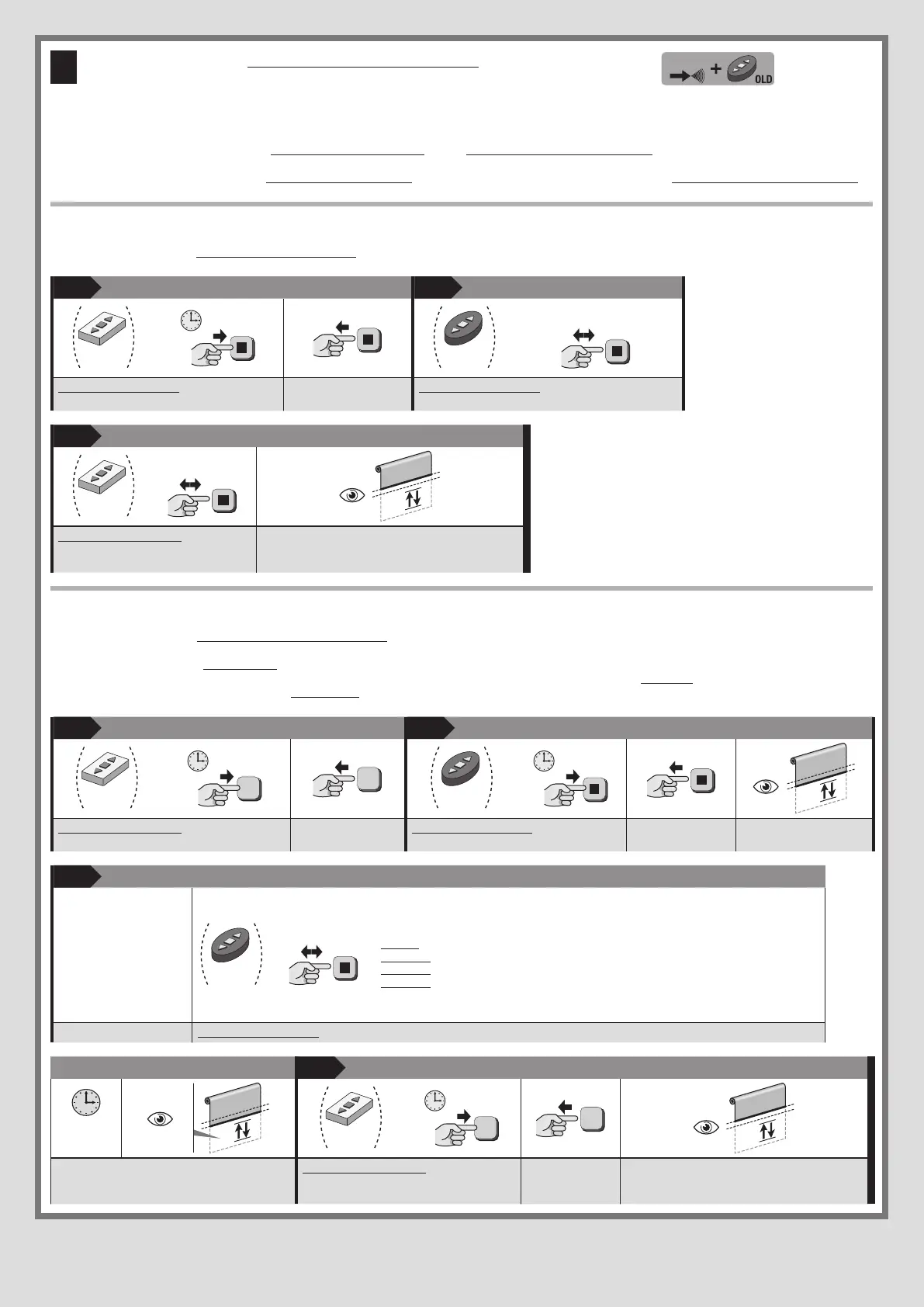 • Procedure D.2.2 memorise a single button on the new transmitter in Mode II; i.e. they associate with the button (chosen by the installer) one of the commands in the