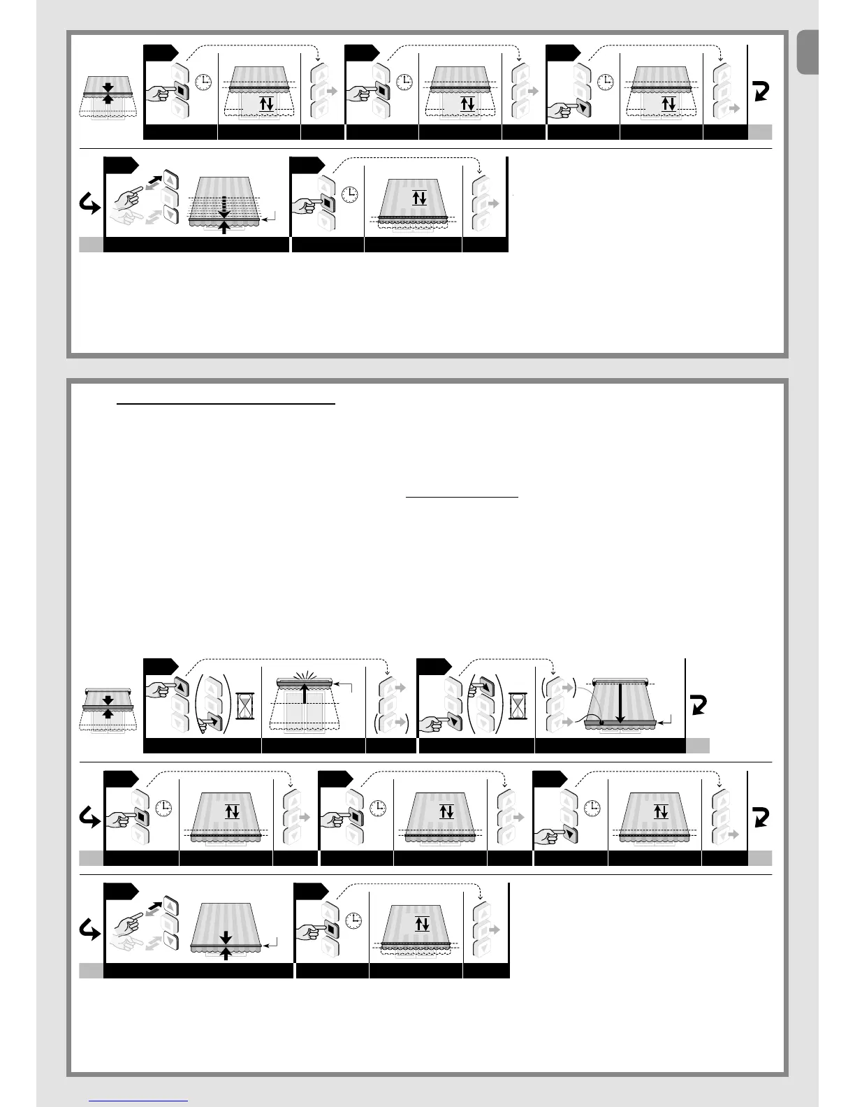 WARNING! – This programming applies to awnings which have the box, thus with retainer in the Upper limit switch “0”. The