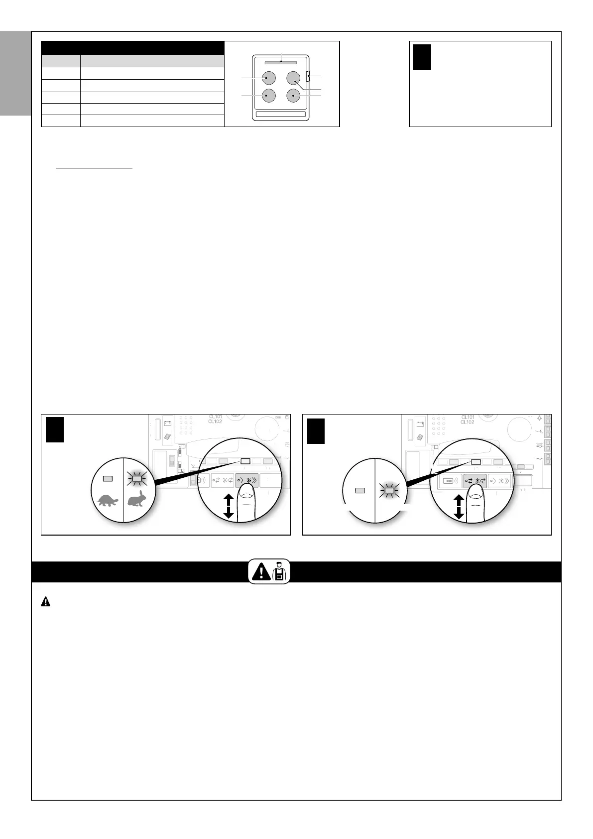 led L2 allumée = la vitesse de manœuvre «rapide» a été sélectionnée.