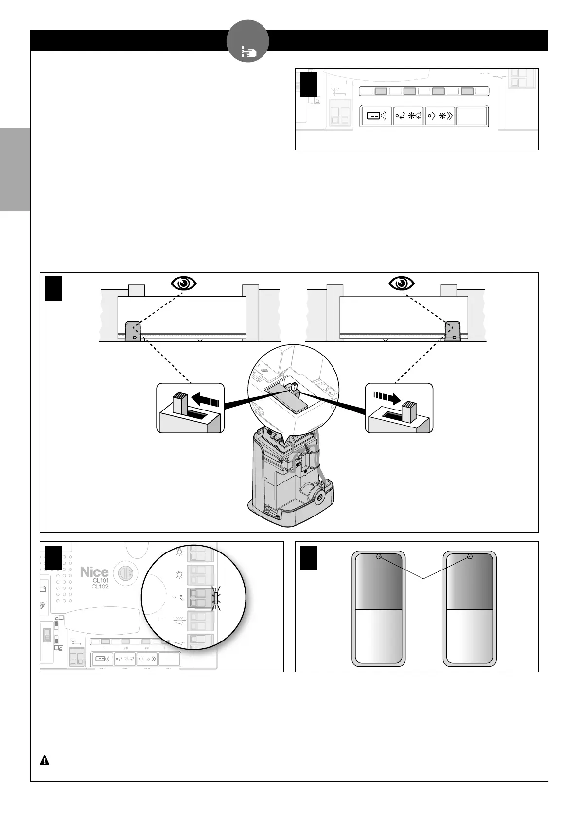 01. Depending on the gearmotor’s installation position ( to the right or left of the gate), shift the selector as shown in Fig. 13 to determine the gate’s