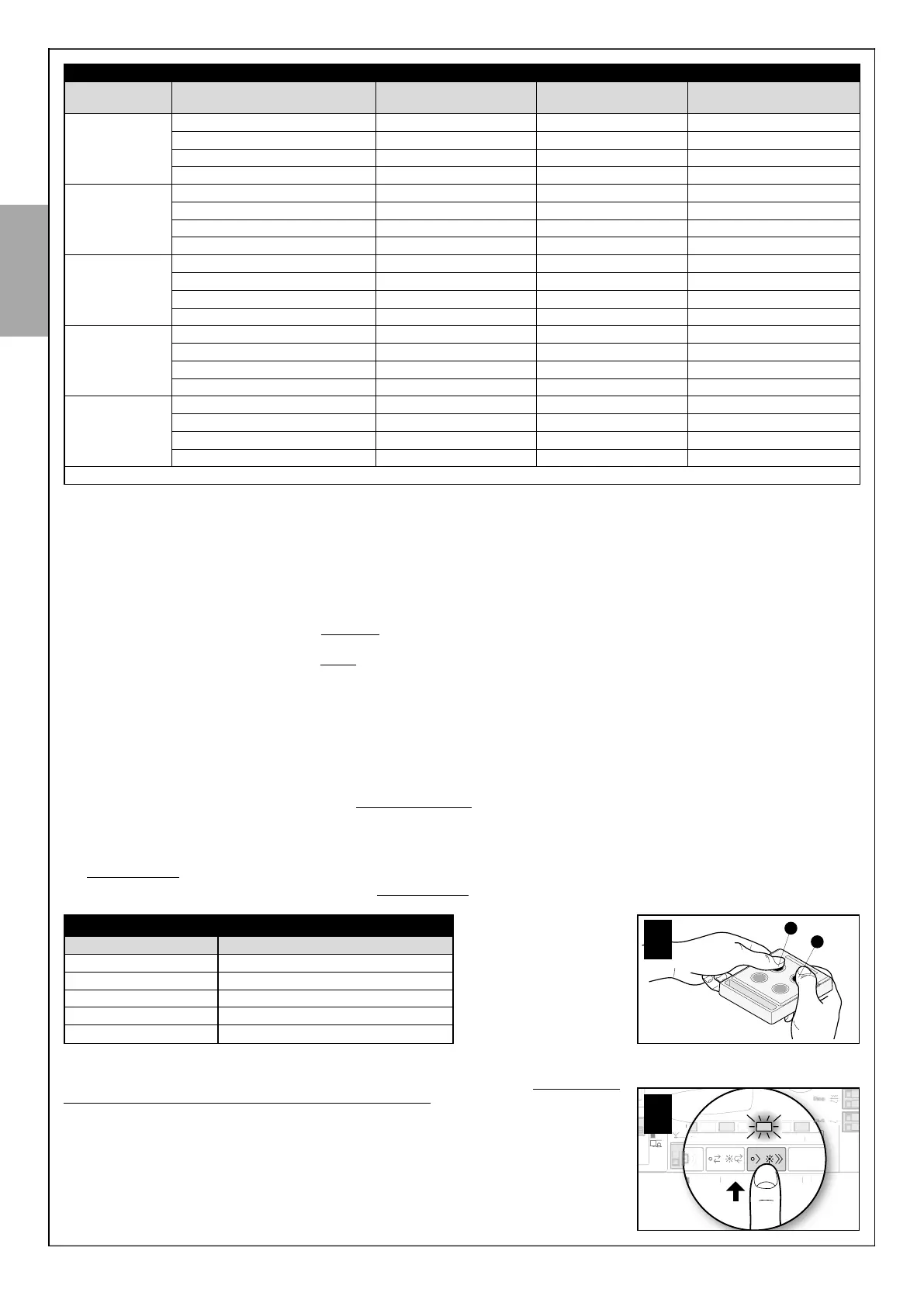 03. Release the key when the flashing light starts flashing: count the flashes. Check in Table 2 the value corresponding to the number of flashes.