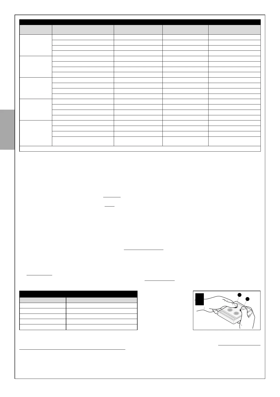 03. Rilasciareiltastoquandoillampeggianteiniziaaemetteredeilampeggi:contare i lampeggi. Verificare nella Tabella 2 il valore che corrisponde al