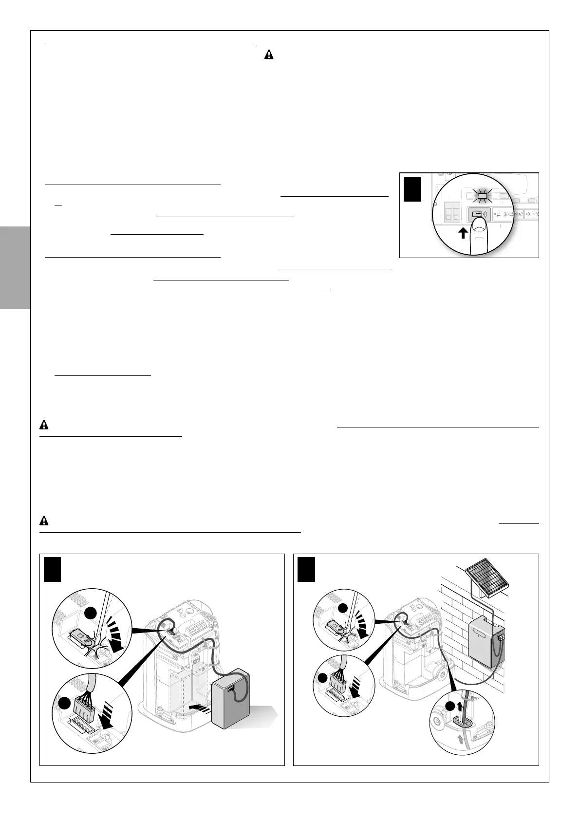 ATTENZIONE! - Quando l’automazione viene alimentata esclusivamente dal sistema di alimentazione ad energia solare, NON DEVE