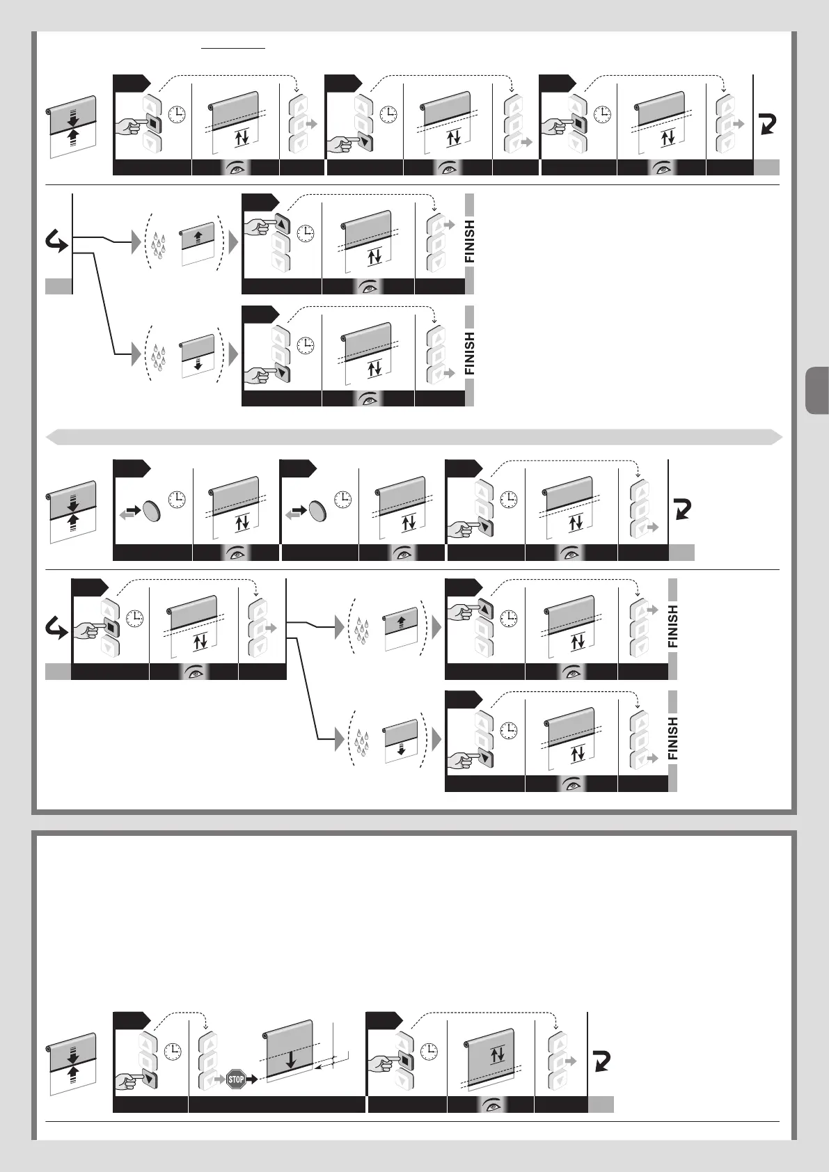 • w celu zaprogramowania Opuszczania rolety (lub markizy): przytrzymać wciśnięty przycisk t i zaczekać, aż silnik wykona 3 manewry.