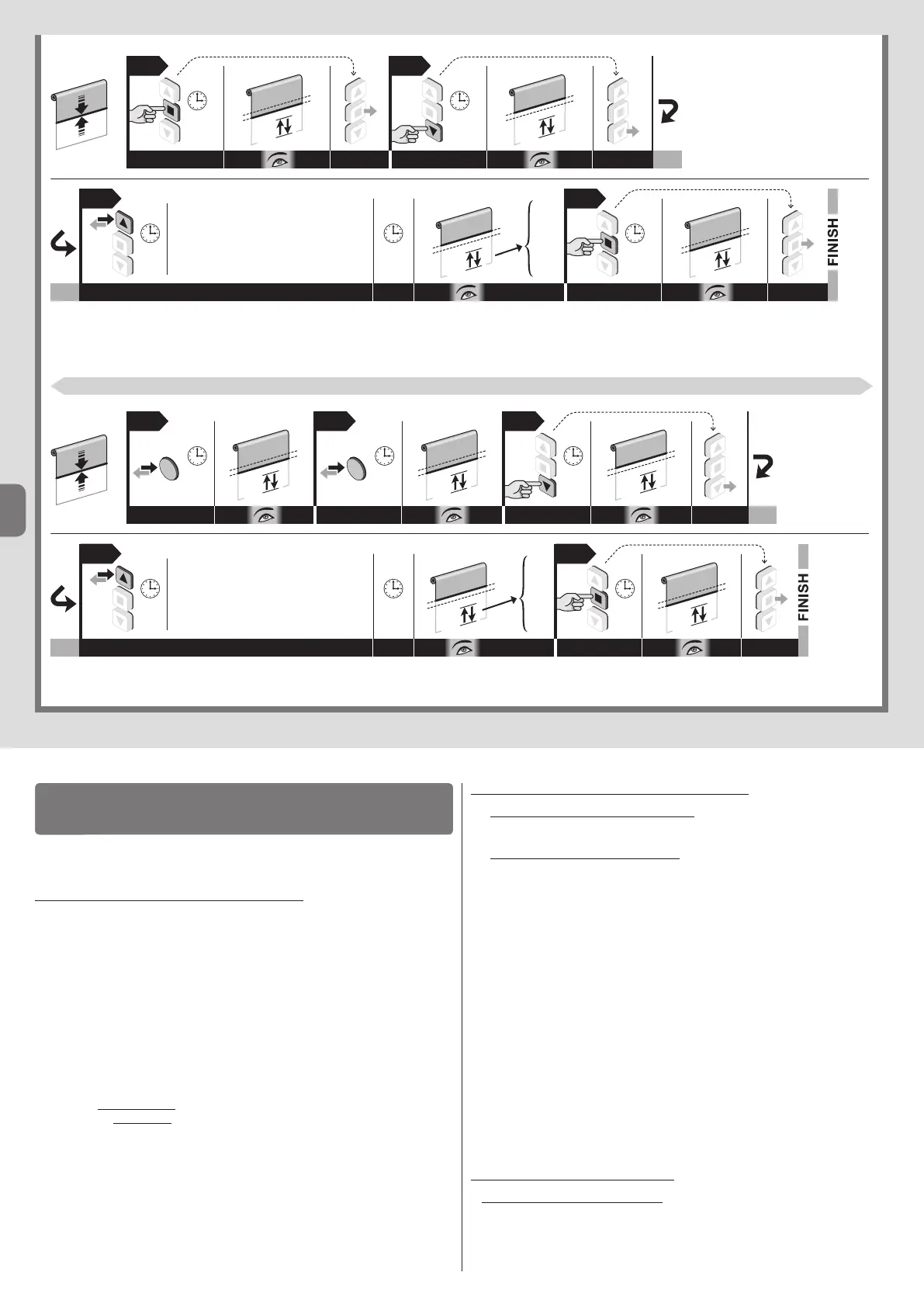 seconden tegelijkertijd ingedrukt te houden. Als alternatief kunt u ook op geen enkele toets drukken en 60 seconden wachten tot de motor 6 bewegingen uitvoert. •