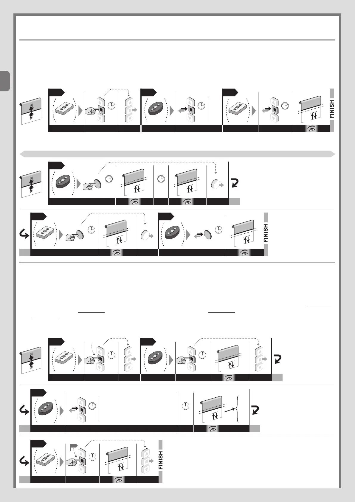 01. (sur le nouvel émetteur) Maintenir enfoncée la touche n pendant 8secondes et la relâcher (dans ce cas le moteur n’effectue aucun mouvement).