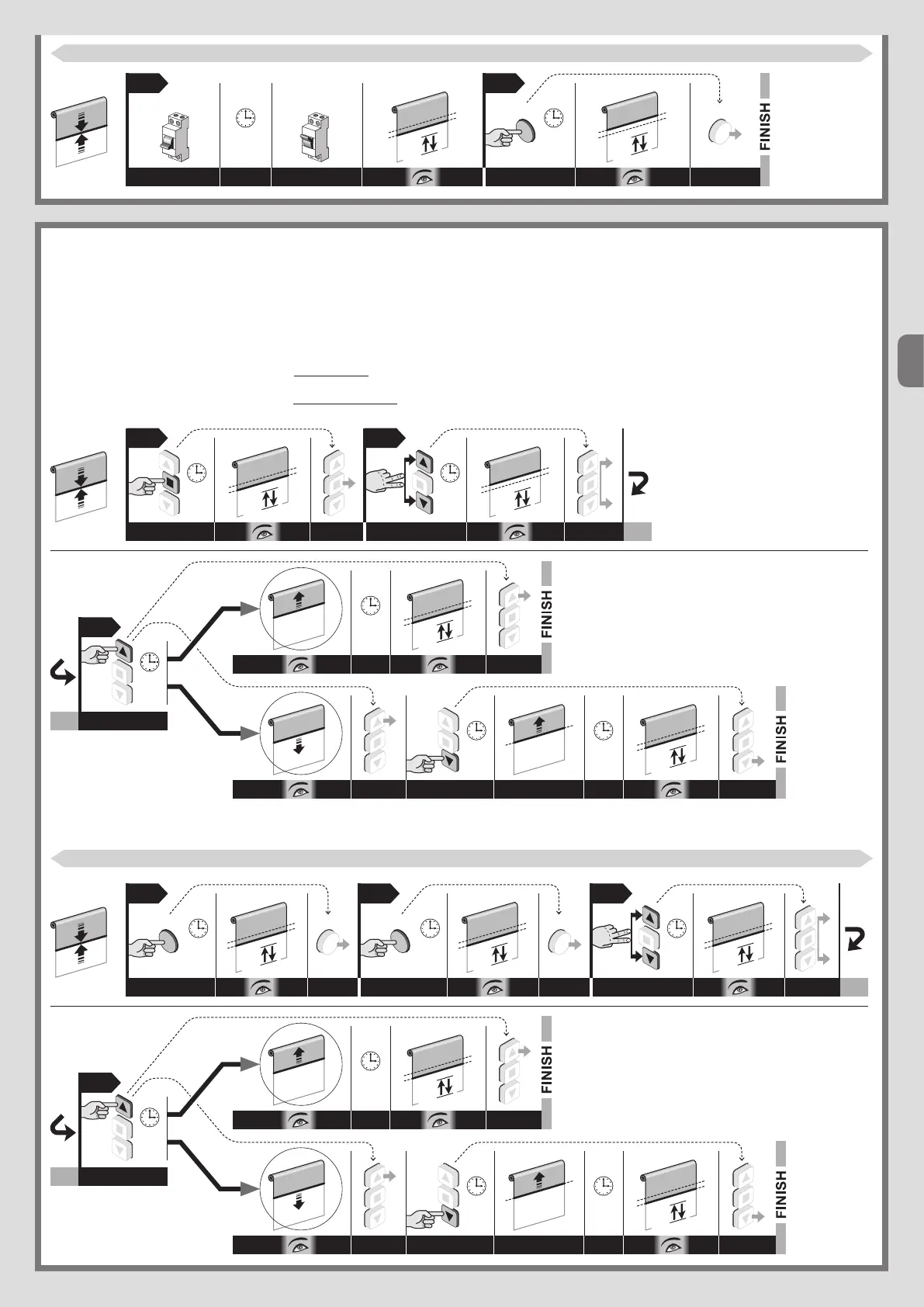 • wenn der Rollladen (oder die Markise) HOCHFÄHRT, die Taste s gedrückt halten und warten, bis der Motor 3 Bewegungen ausführt. Die Taste