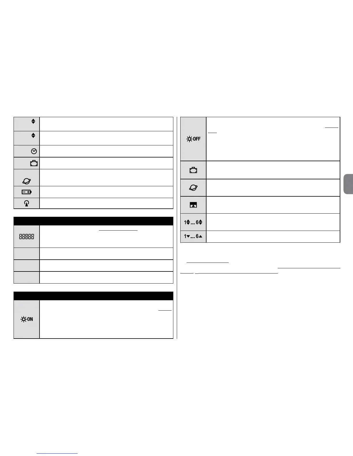 Indique que la pile est usée et qu’il faut la remplacer dès que pos-