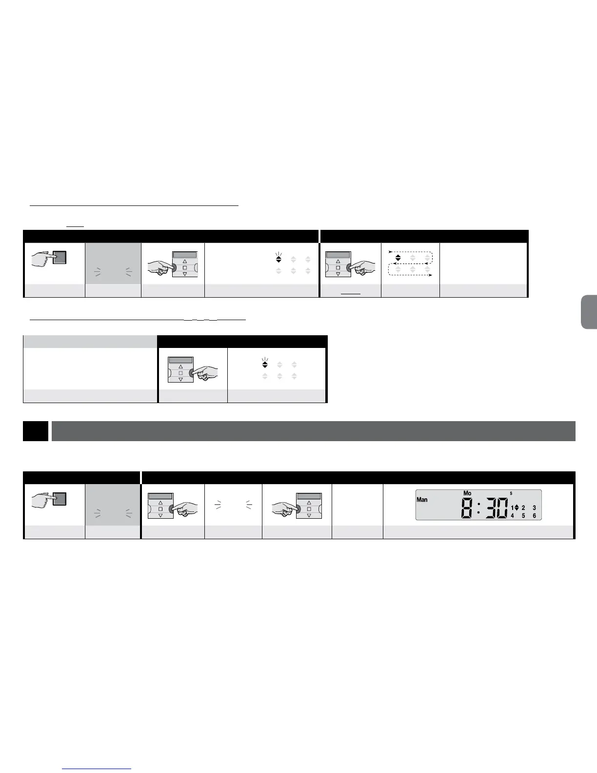(1) - La page-écran affiche : le message «Man» allumé en permanence, l’heure actuelle, le jour effectif de la semaine, l’heure d’hiver (ou d’été), le groupe 1 accompa-