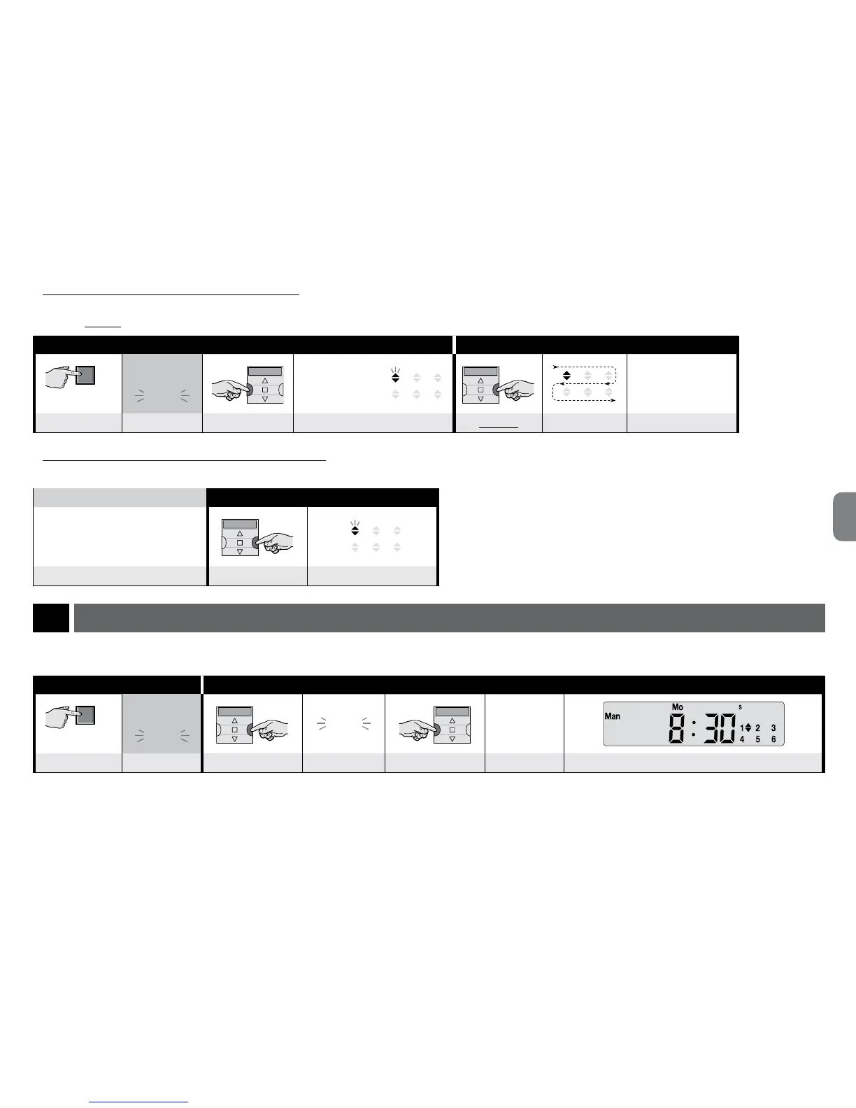 (1) - La pantalla muestra: la indicación “Man” encendida de manera fija, la hora actual, el día actual de la semana, la hora de invierno o de verano, el grupo 1 con el