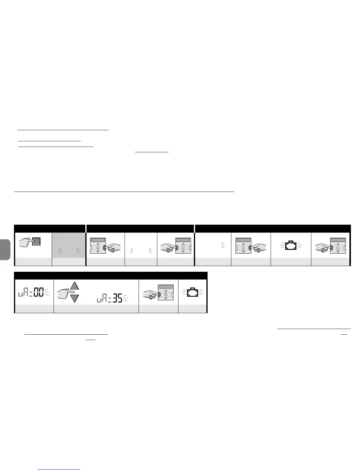 • die Parameter der Sonderfunktionen eingeben: „Im Urlaub” durch Verfahren 4, „Erdzeit” durch Verfahren 5 (Hinweis – Wenn beim Stromanschluss des Senders Verfahren