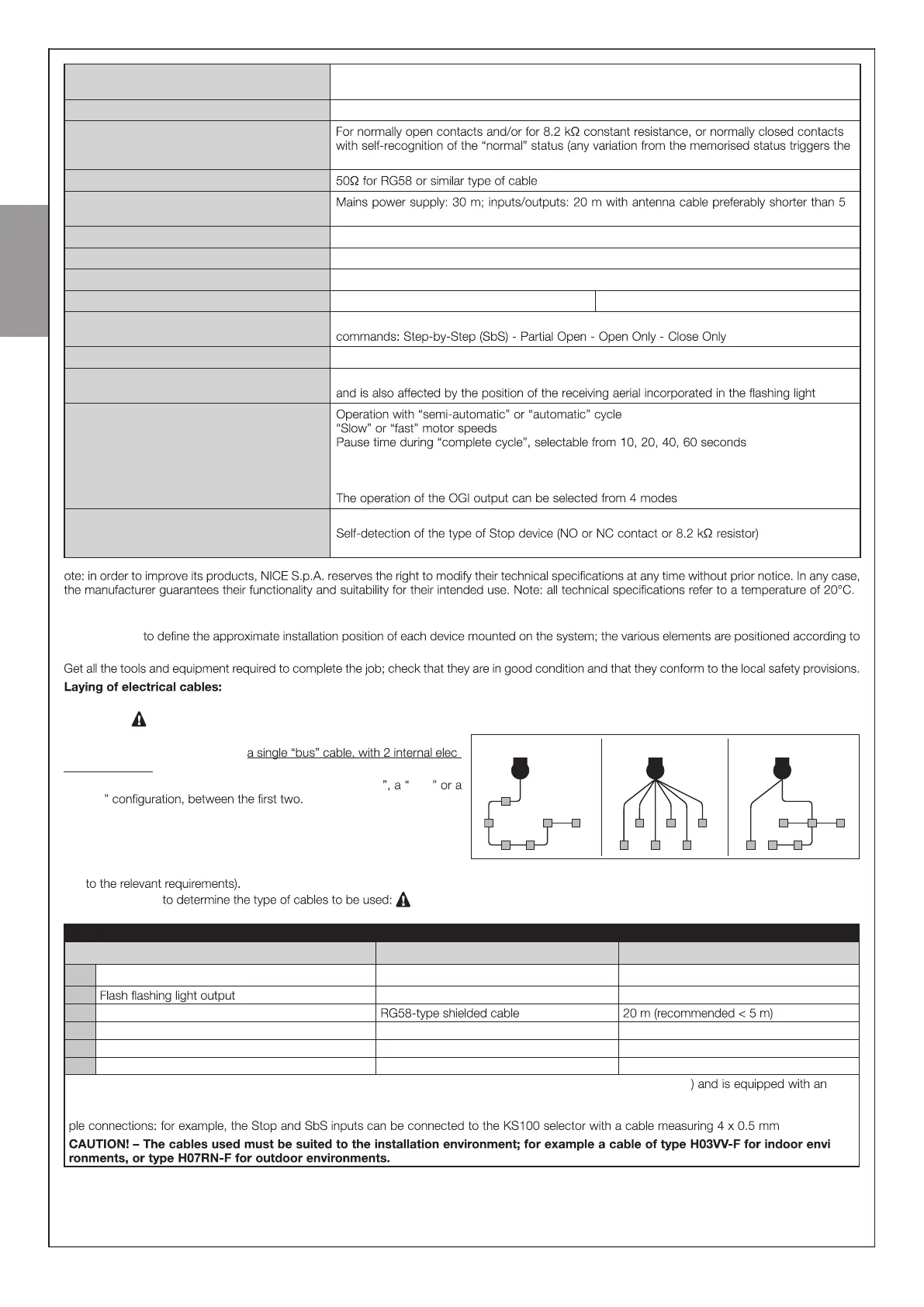 ** For the ECSBus cables and the Stop and SbS inputs, it is also possible to use a single cable with multiple internal conductors, to group multi -