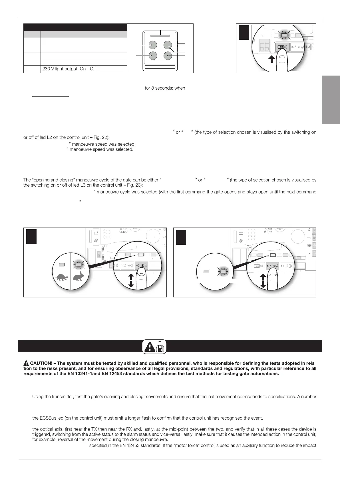 01. On the control unit (Fig. 21 ) press and hold button P4 led L4 switches on, release the button.