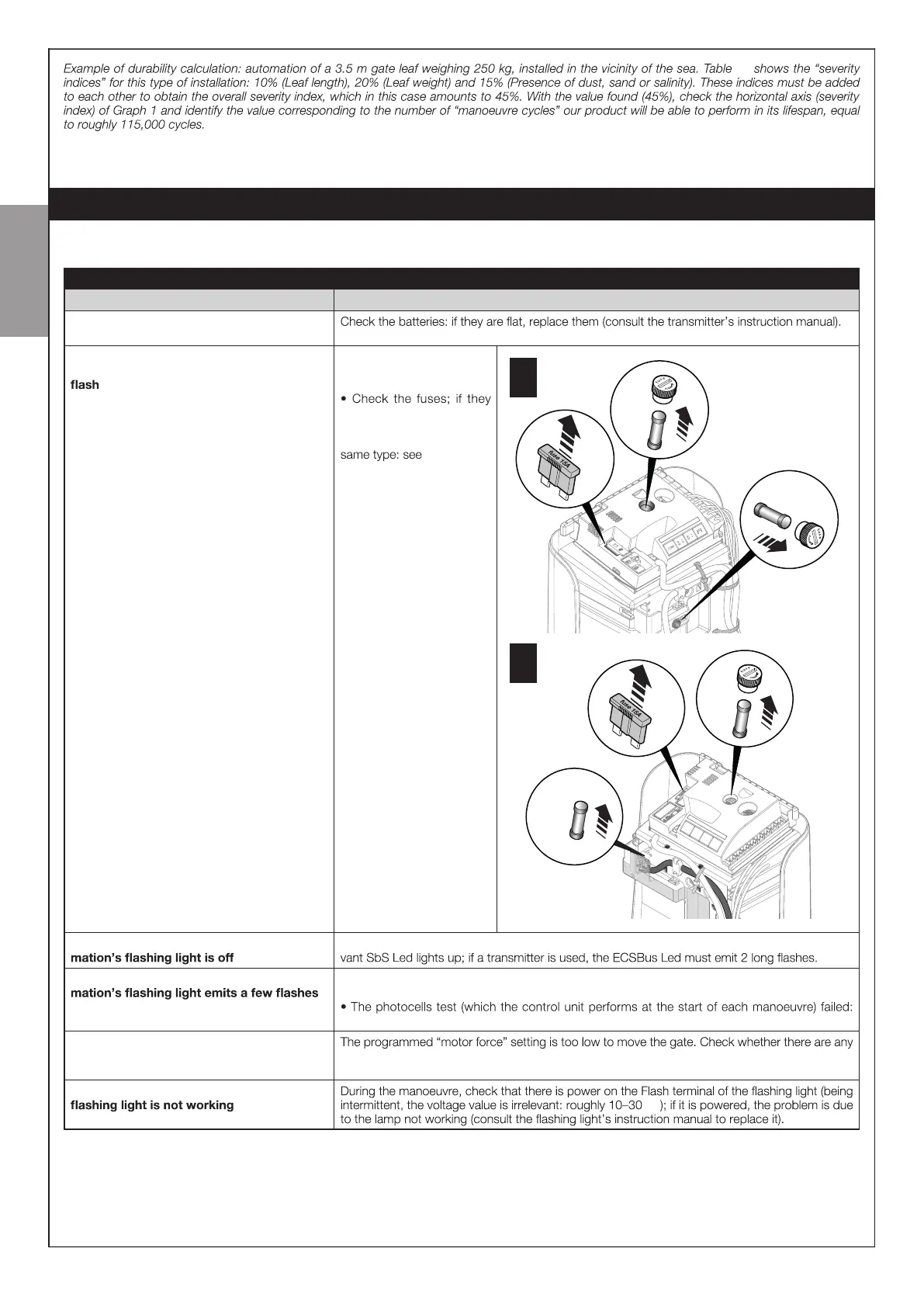 The manoeuvre fails to start and the auto - • Check that the Stop input is active (in other words, that the Stop Led is lit). Should this not be