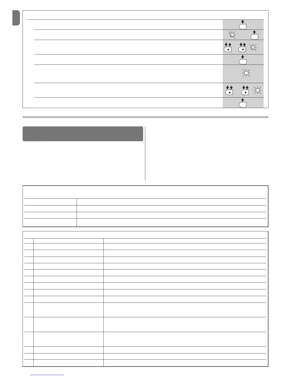 06. Press keys “” and “u” to select the required manoeuvre: the corresponding LED performs a number of flashes equal