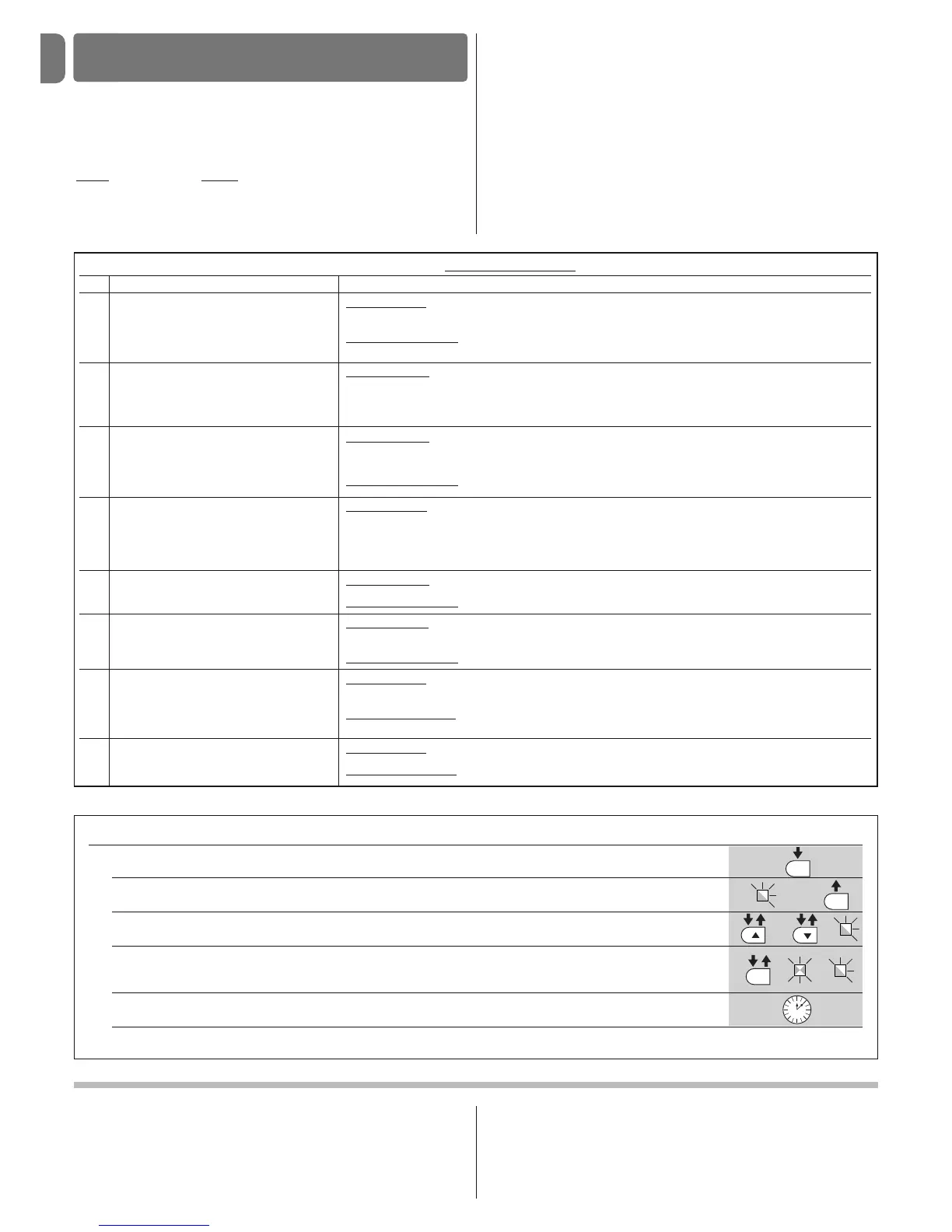 To check the functions see Table 5. For the programming procedure see Table 6.