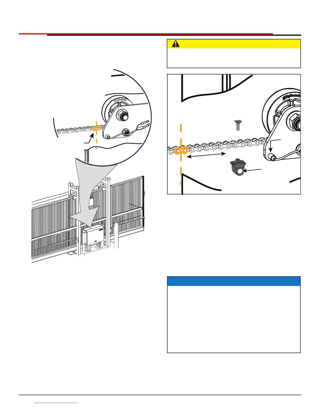 1. With gate CLOSED, mark chain link directly in