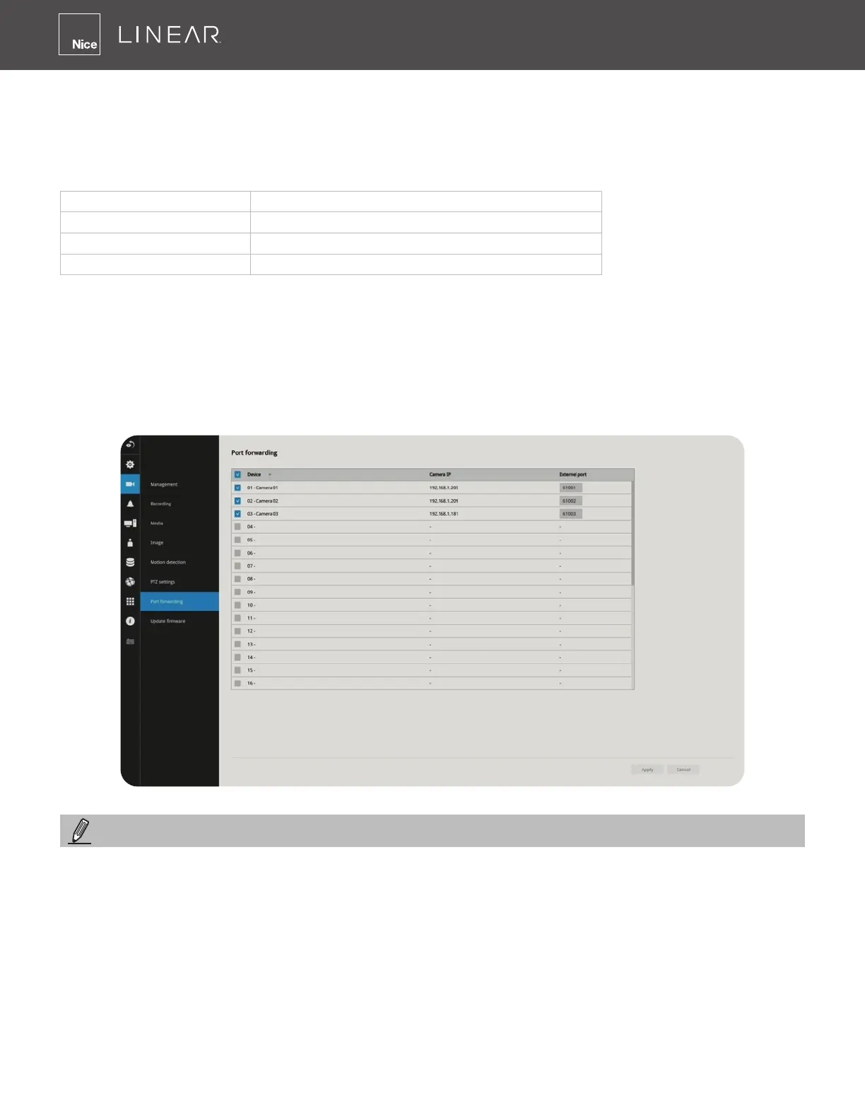 You can associate an external port number to the cameras managed by the NVR� You can then