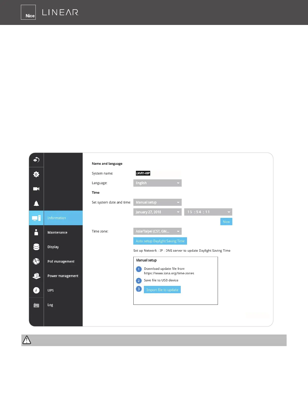 Note that if NTP time server conguration (Auto) is preferred, the system will automatically