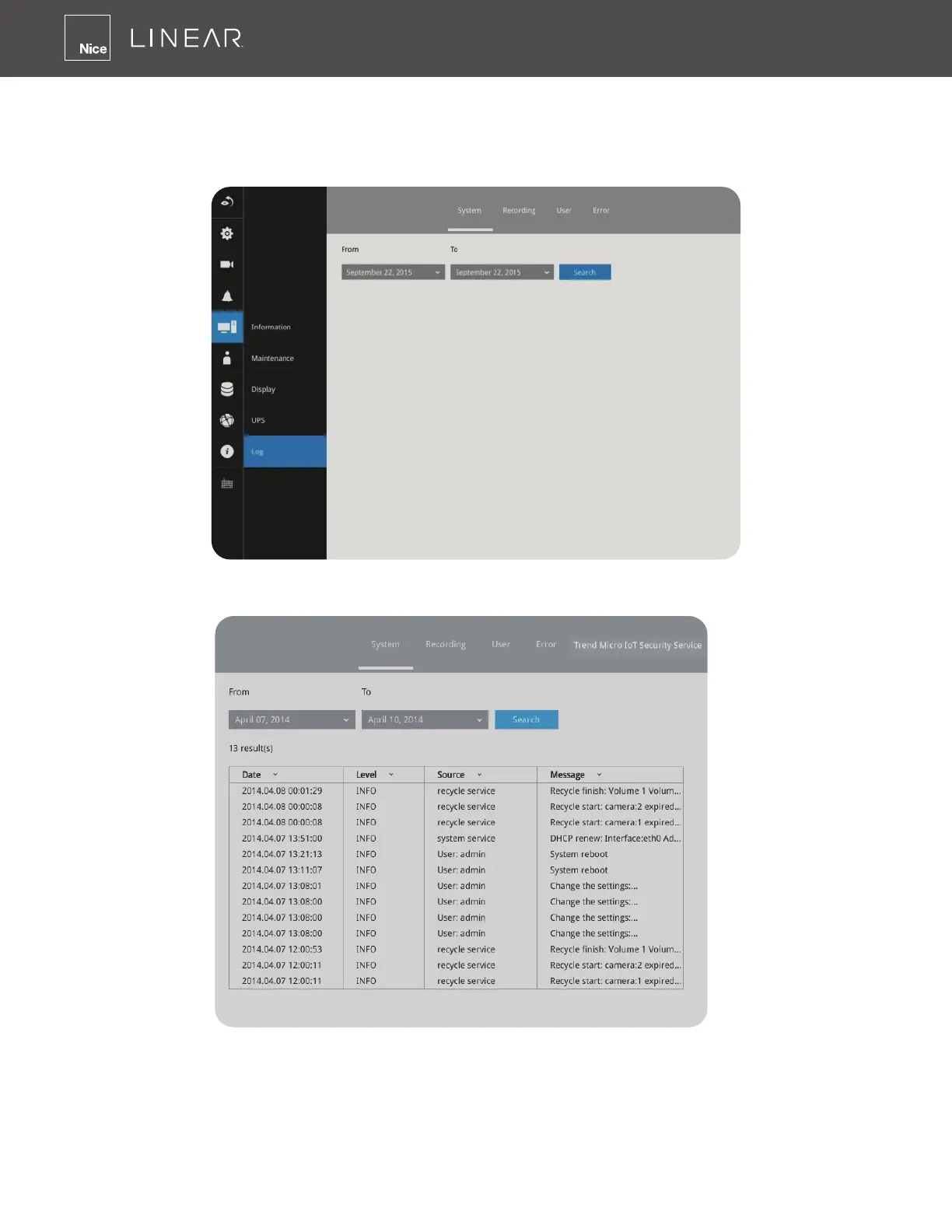 Nice Linear LNVR1-08P - Settings - System - Log