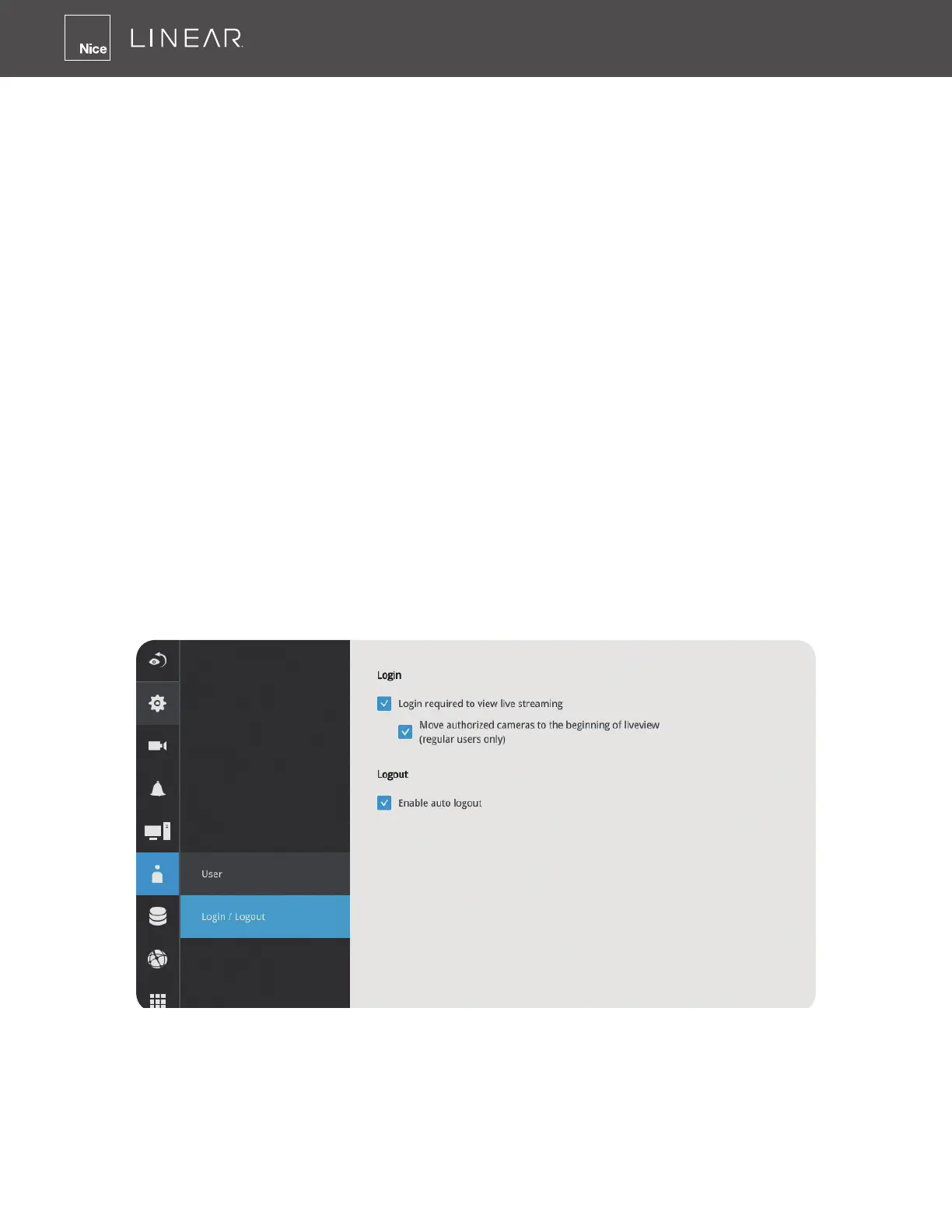 Auto Logout should also be enabled when the NVR will be left unattended for an extended