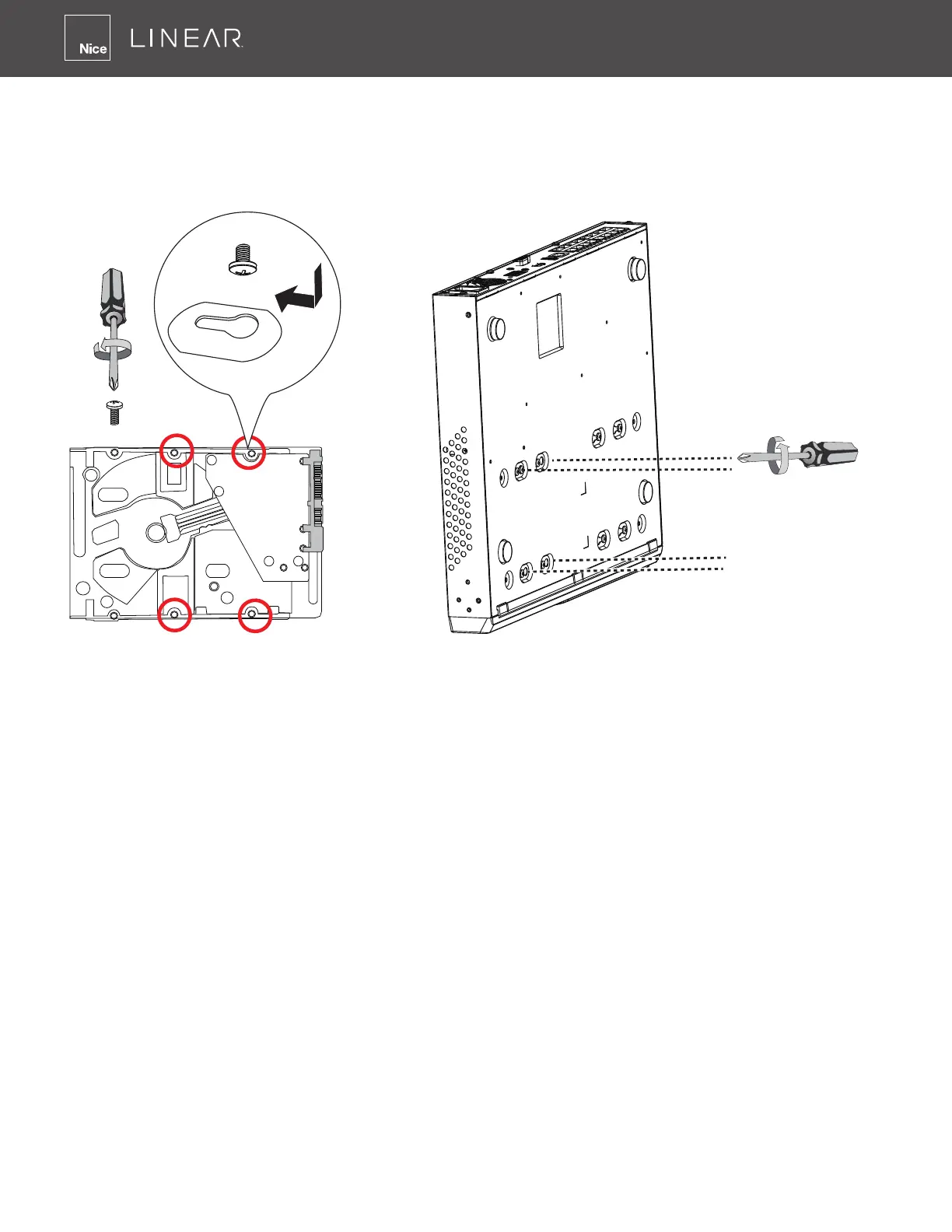 5� Insert four supplied screws into the HDD (leaving them loose)� Position the HDD screws
