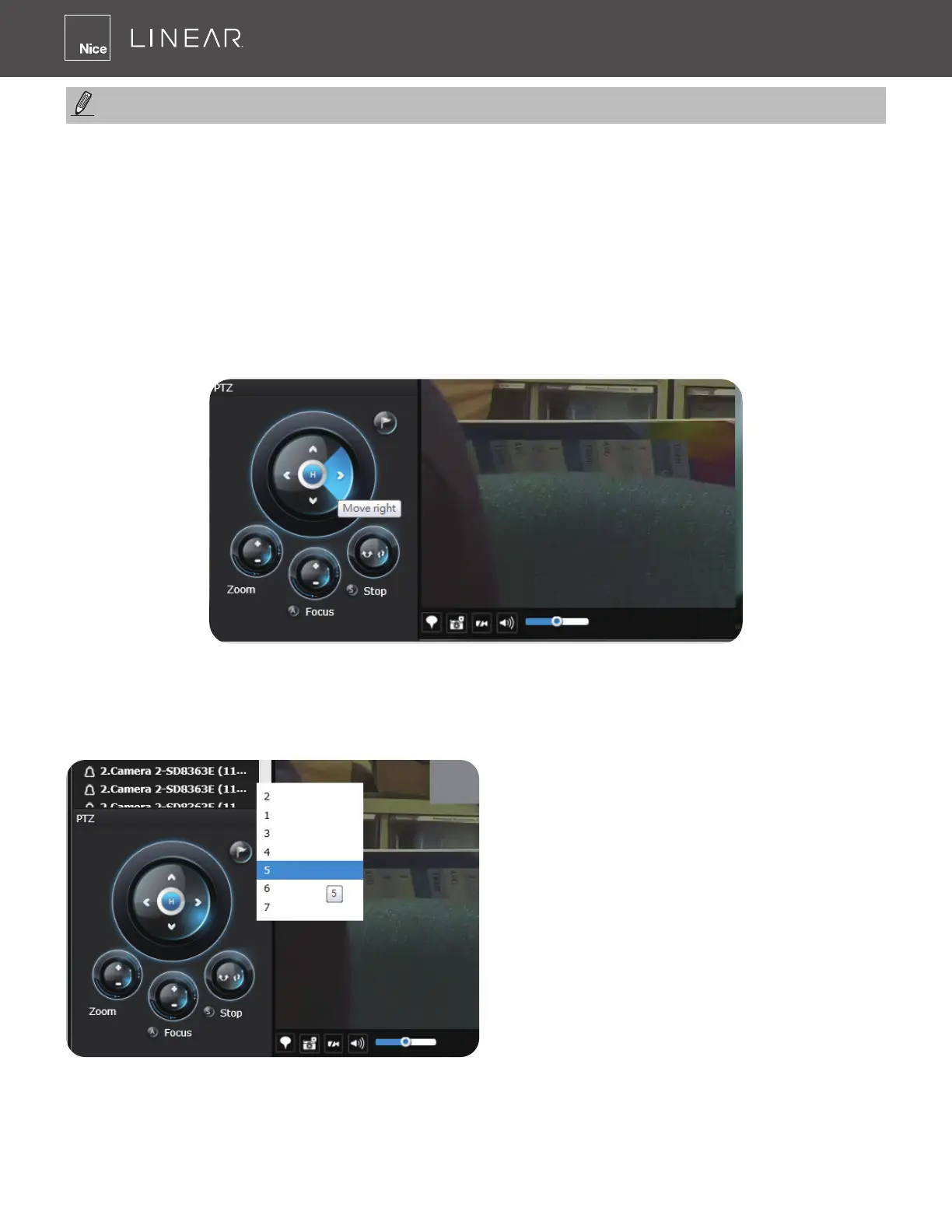 GUI elements� For all compatible cameras and exerting Zoom, Focus and Patrol functions, please